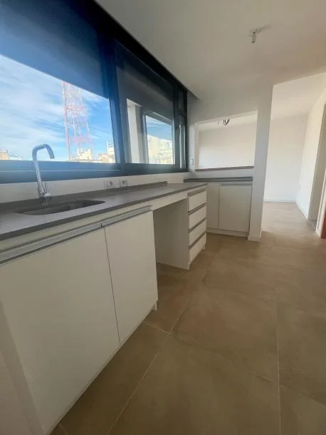 El apartamento se entrega con persianas eléctricas en living y dormitorio. Cuenta además con extractor, desayunador y bajo mesada en la cocina.