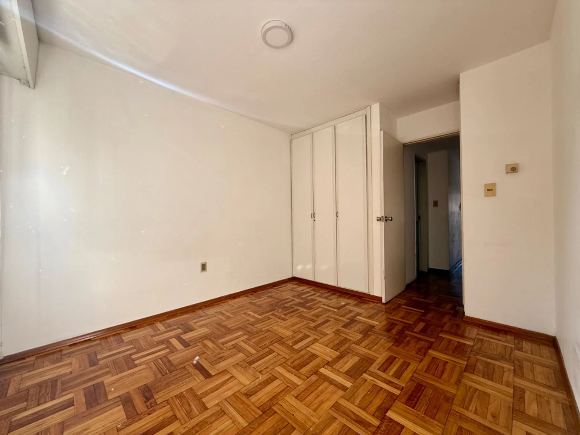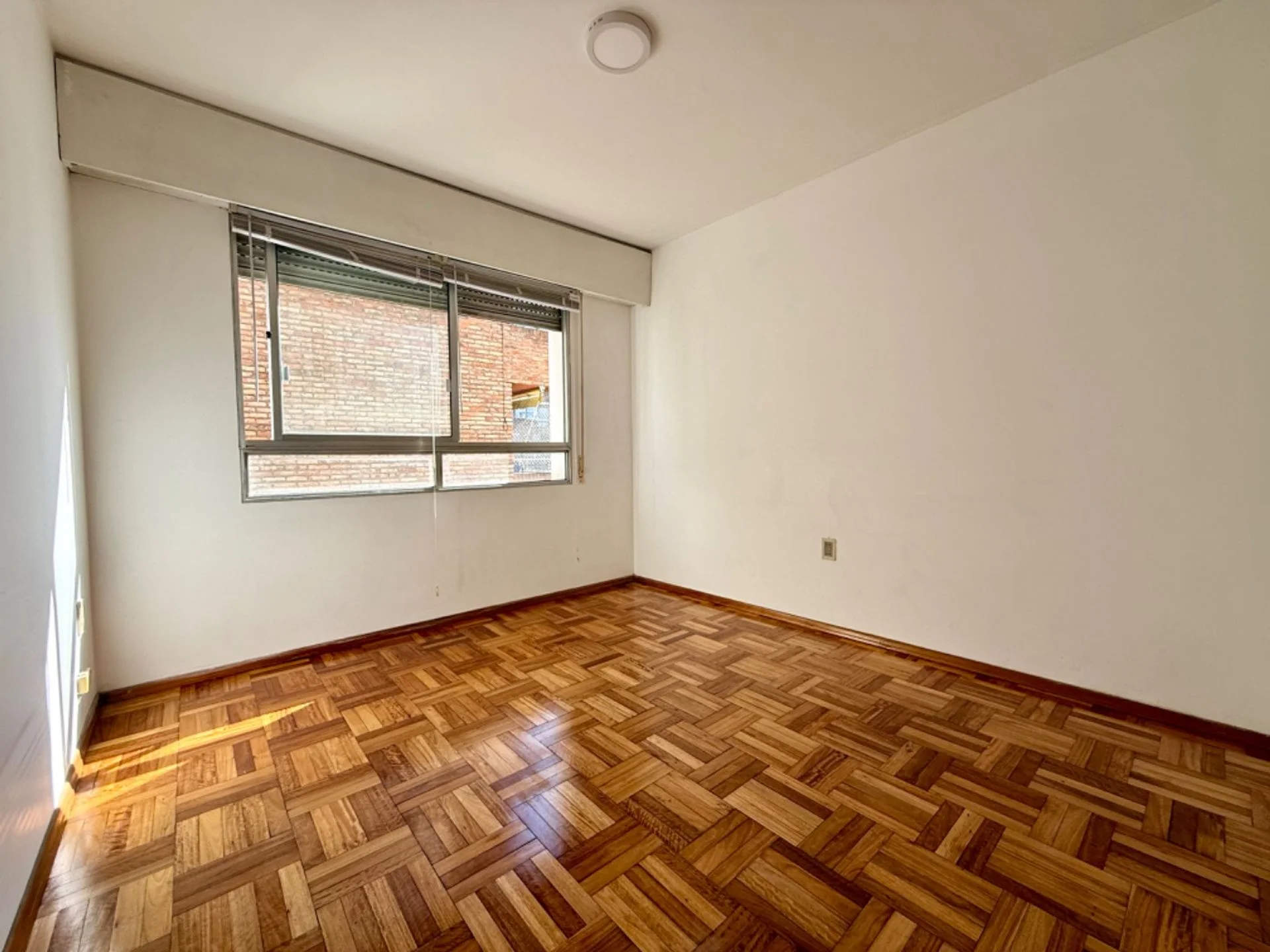 Dormitorio con placares y persianas.