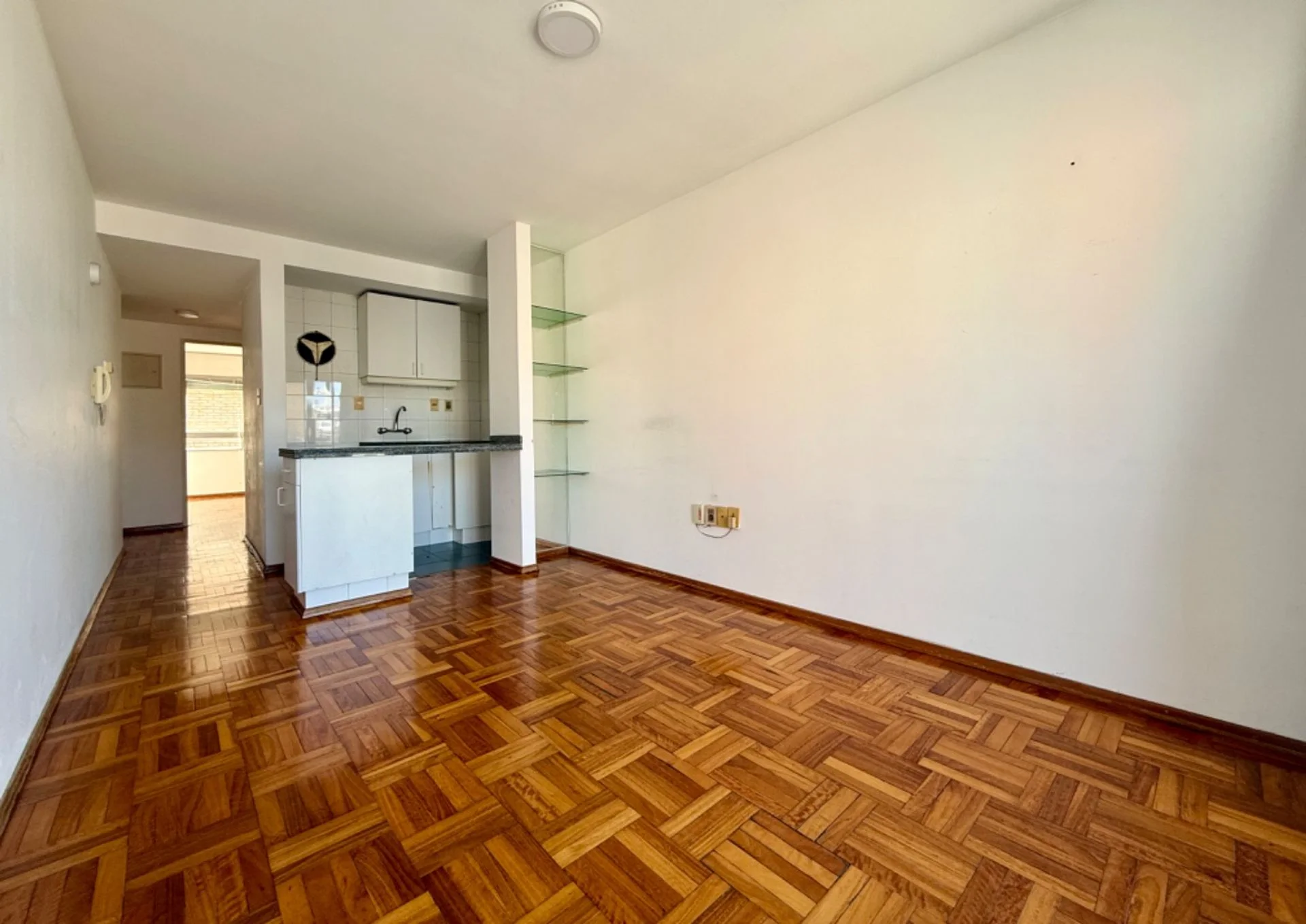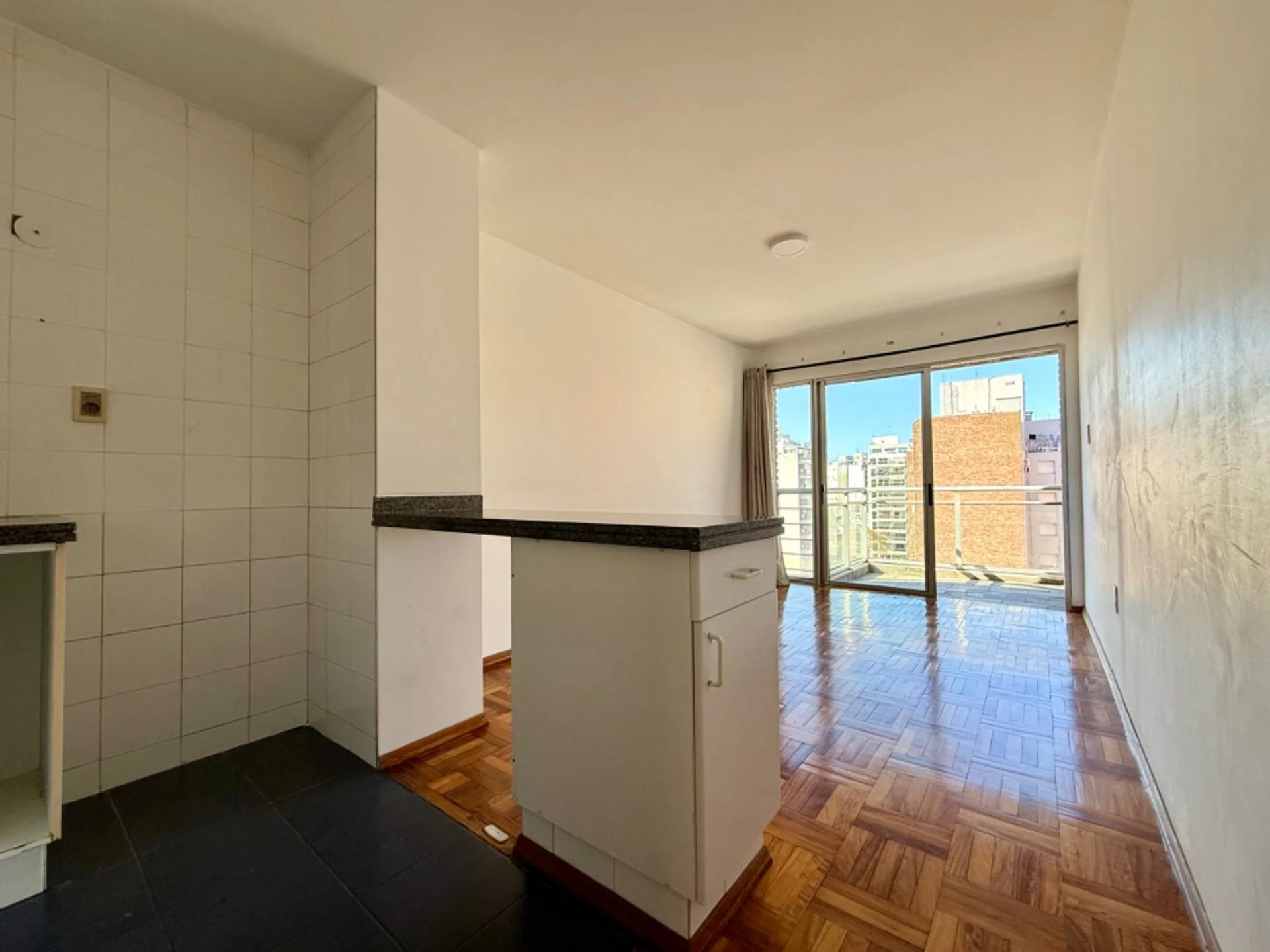 Living comedor con salida a cómodo Balcon soleado. Cocina integrada.