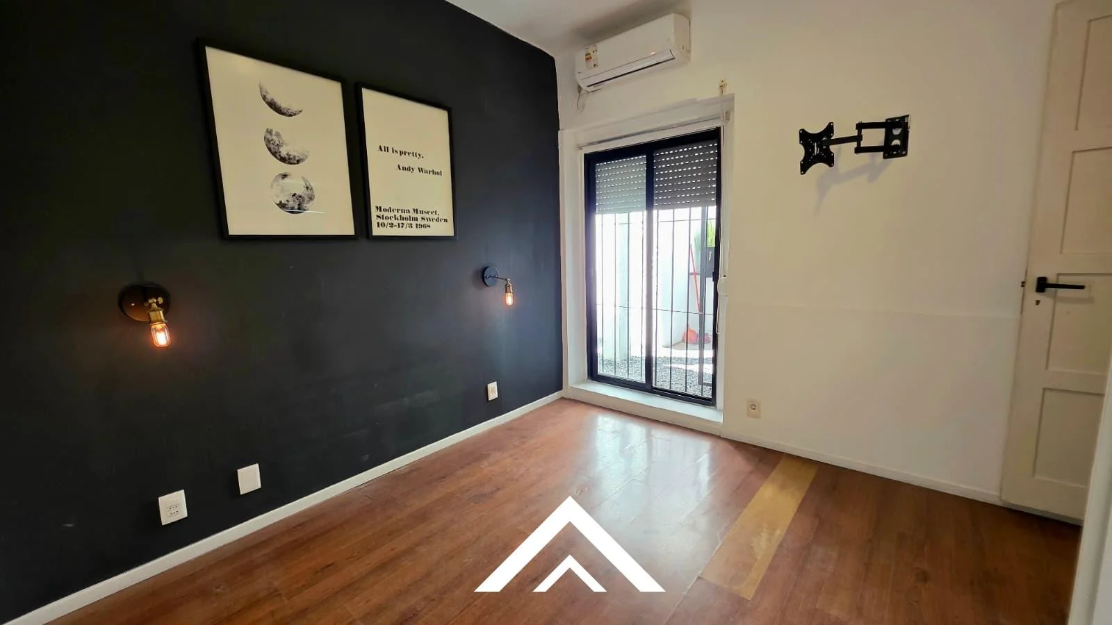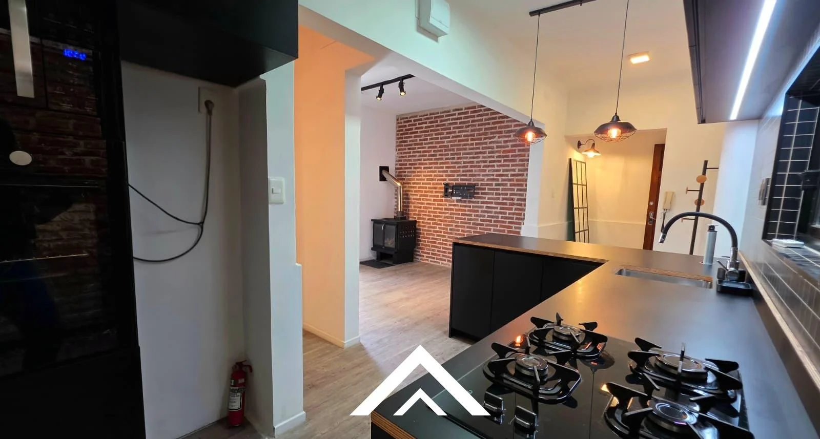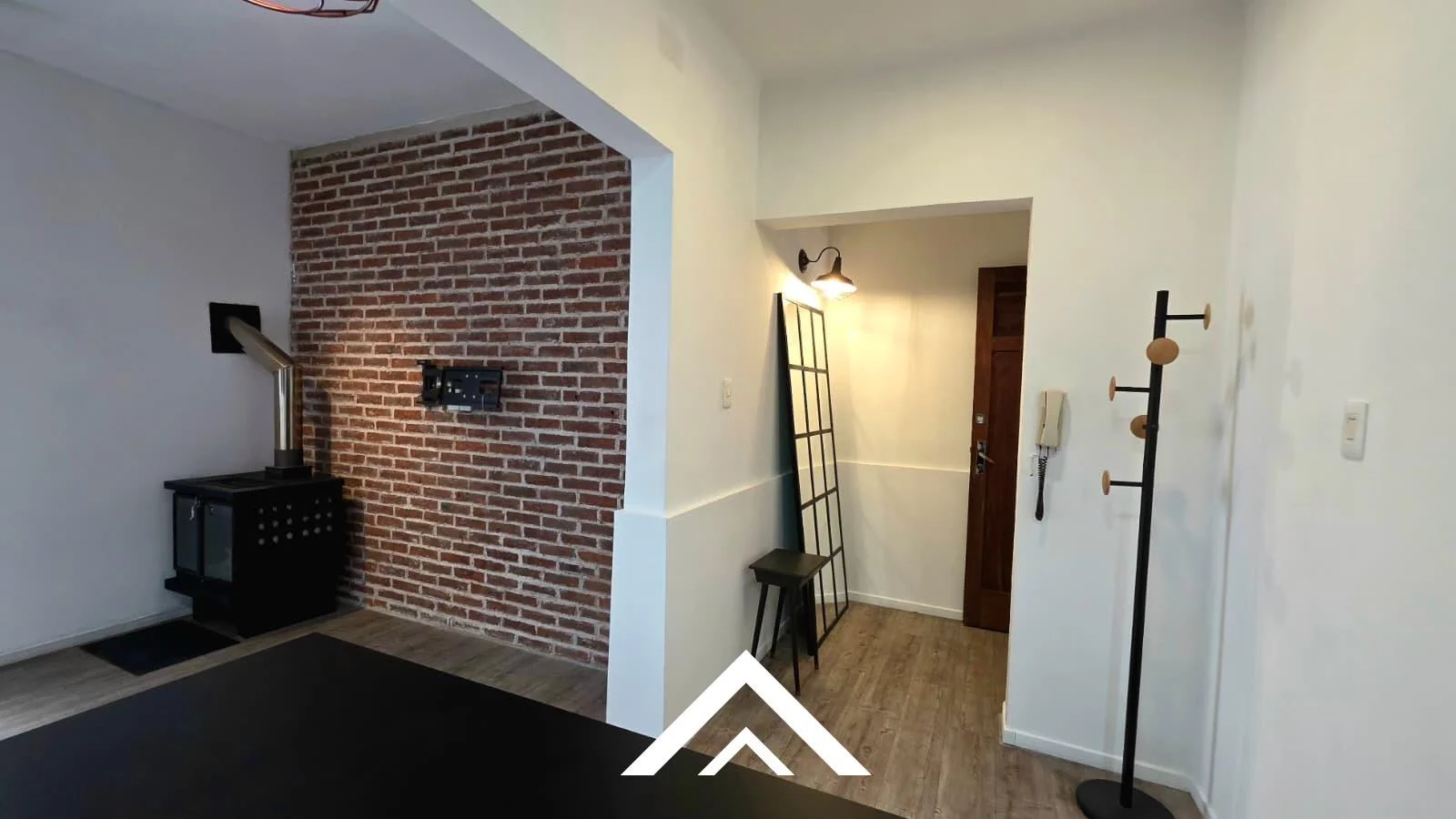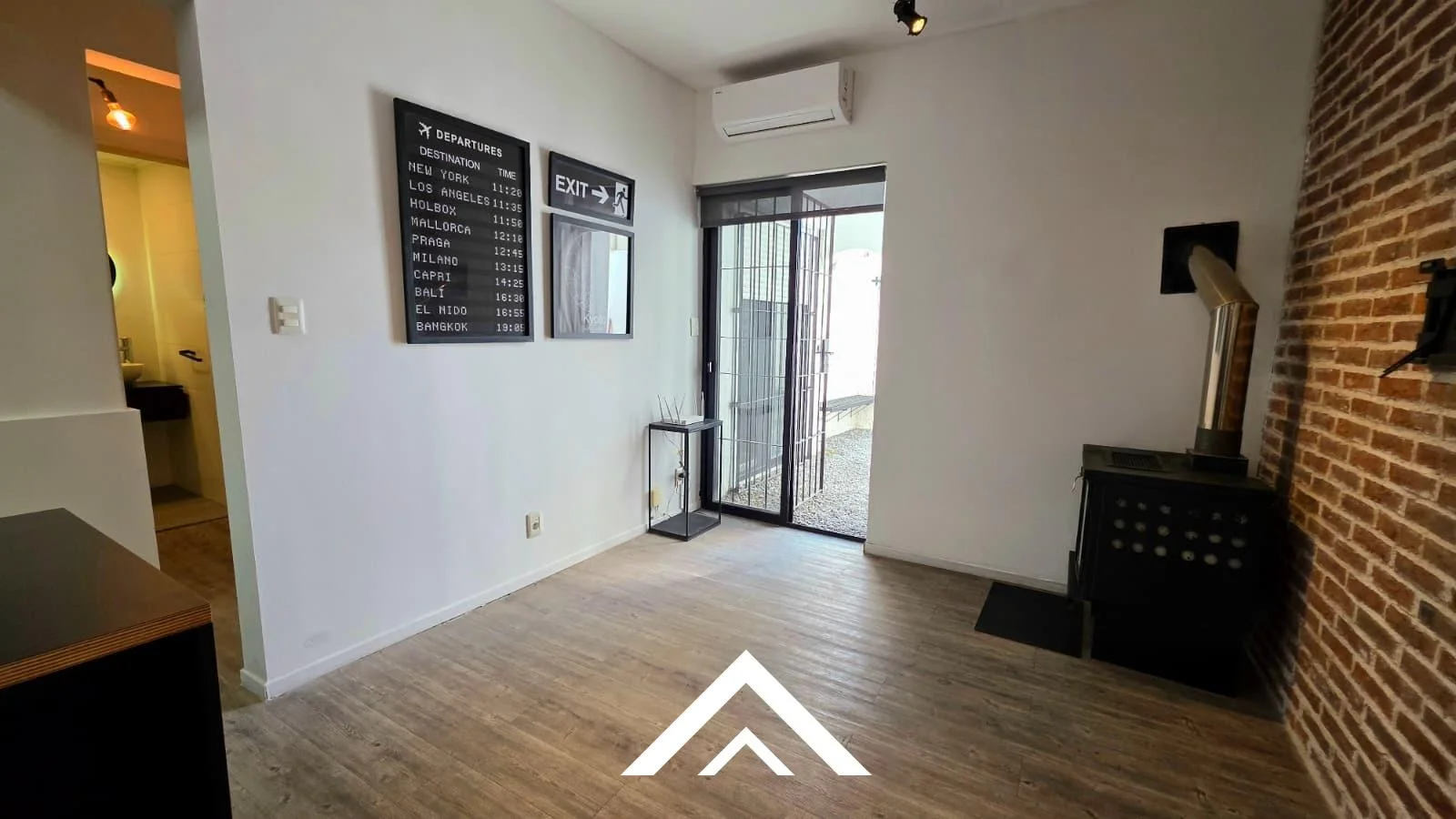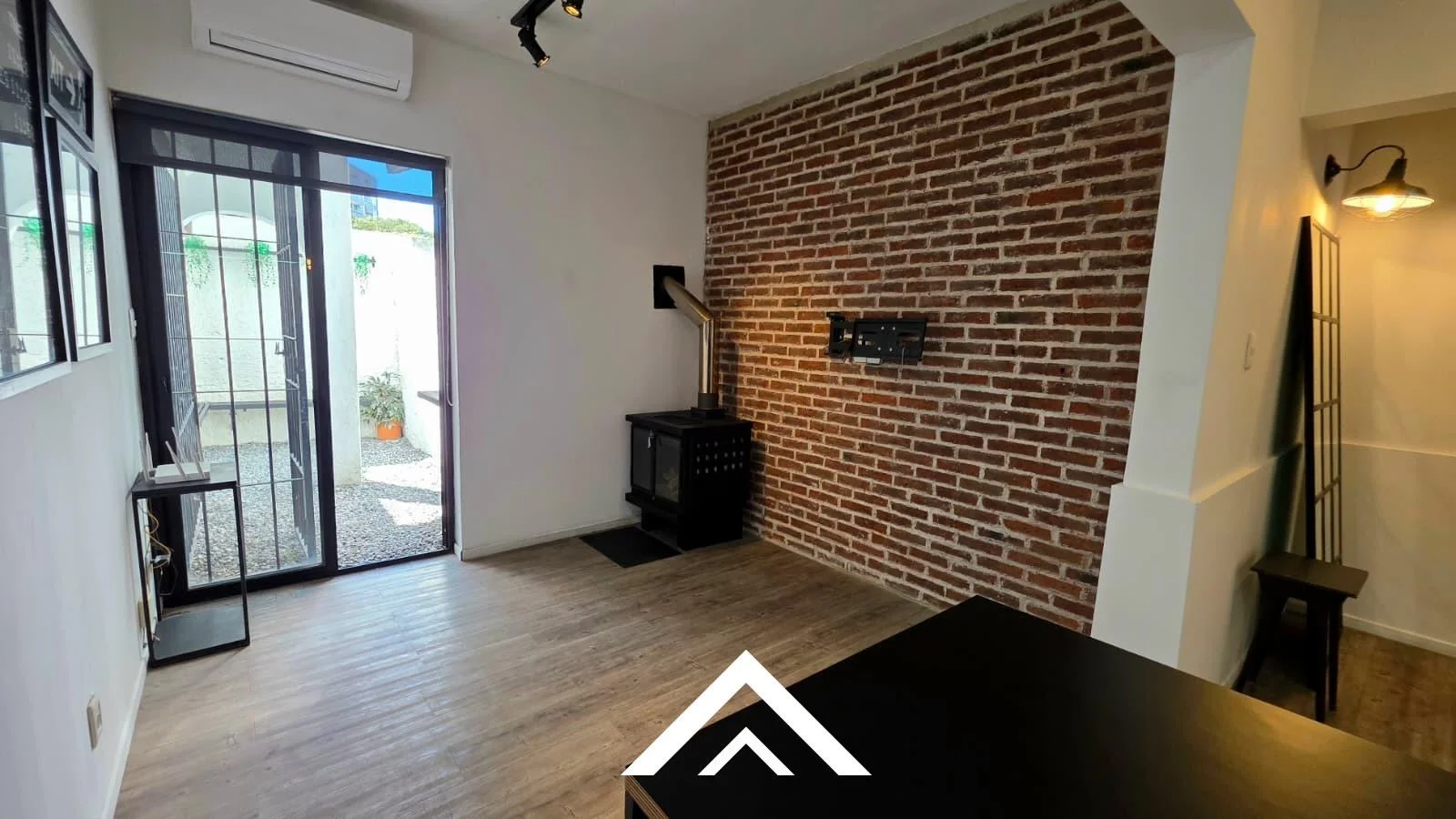 + Living con estufa a leña, aire acondicionado y salida con rejas de seguridad al patio. Soporte para TV instalado en pared.