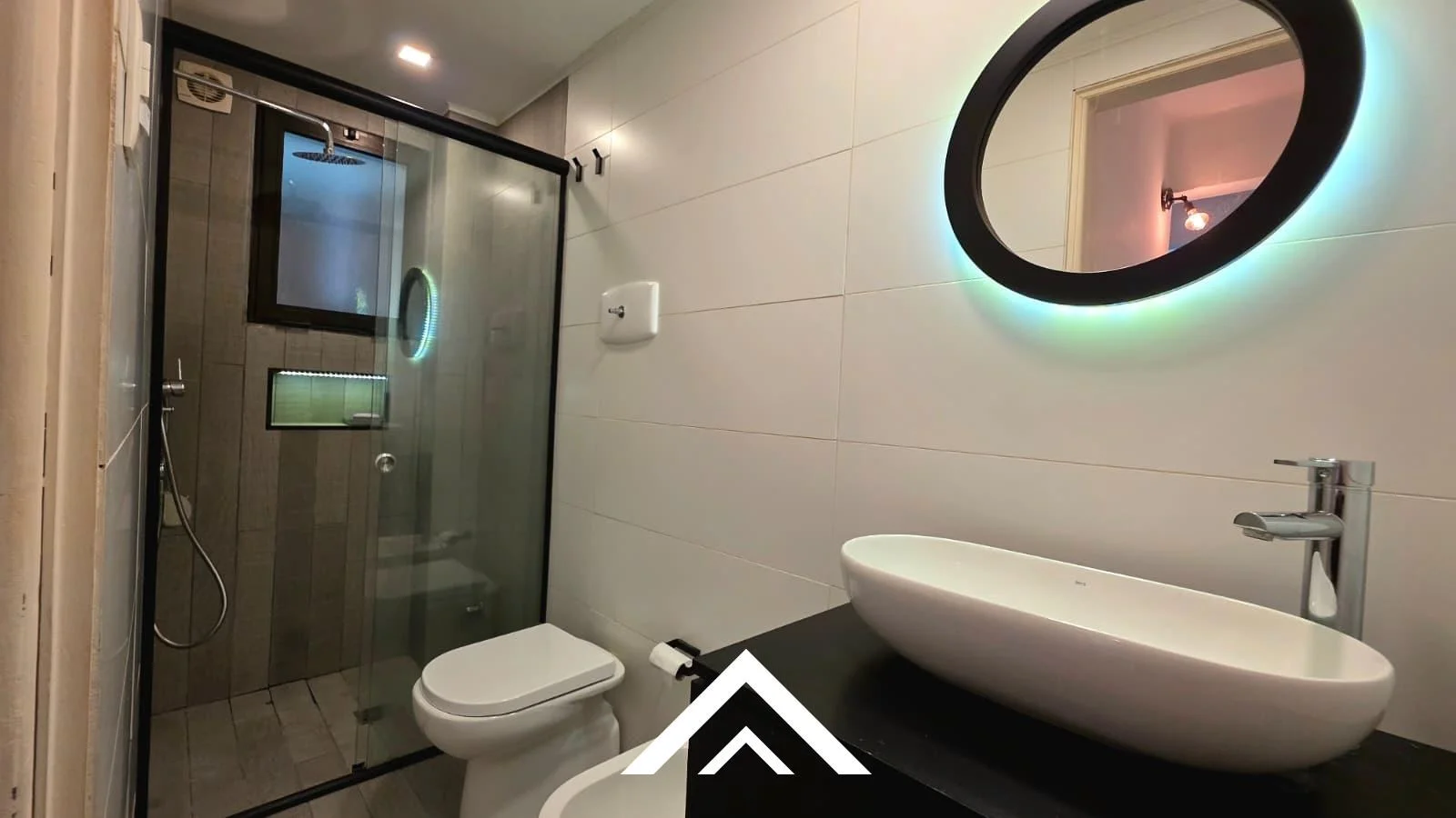 + Baño completo con espejo, mampara de cristal y ventilación natural.