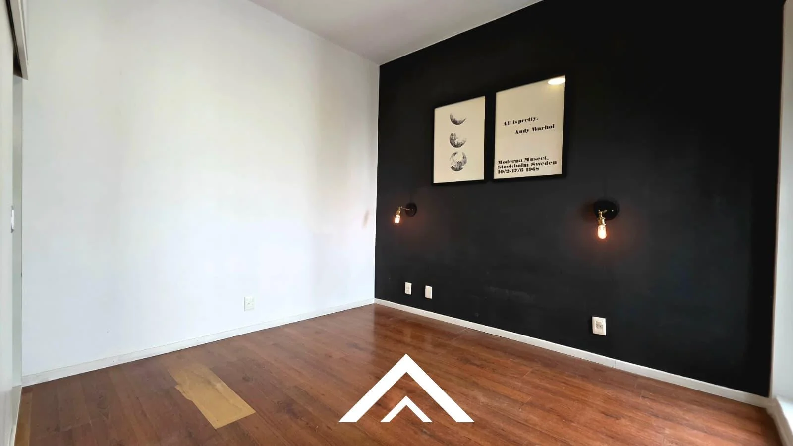 + Dormitorio con placard, aire acondicionado, cortinas tipo persianas y soporte para TV instalado en pared.