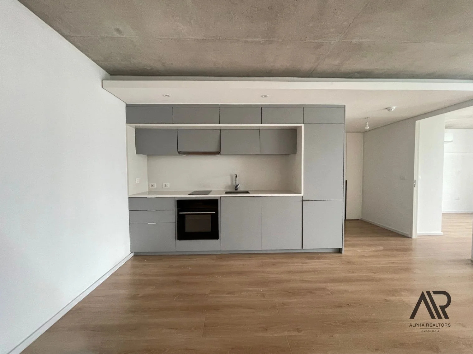 - Espacio de living comedor cocina integrado con profusión de muebles, horno, anafe, campana y heladera panelable.