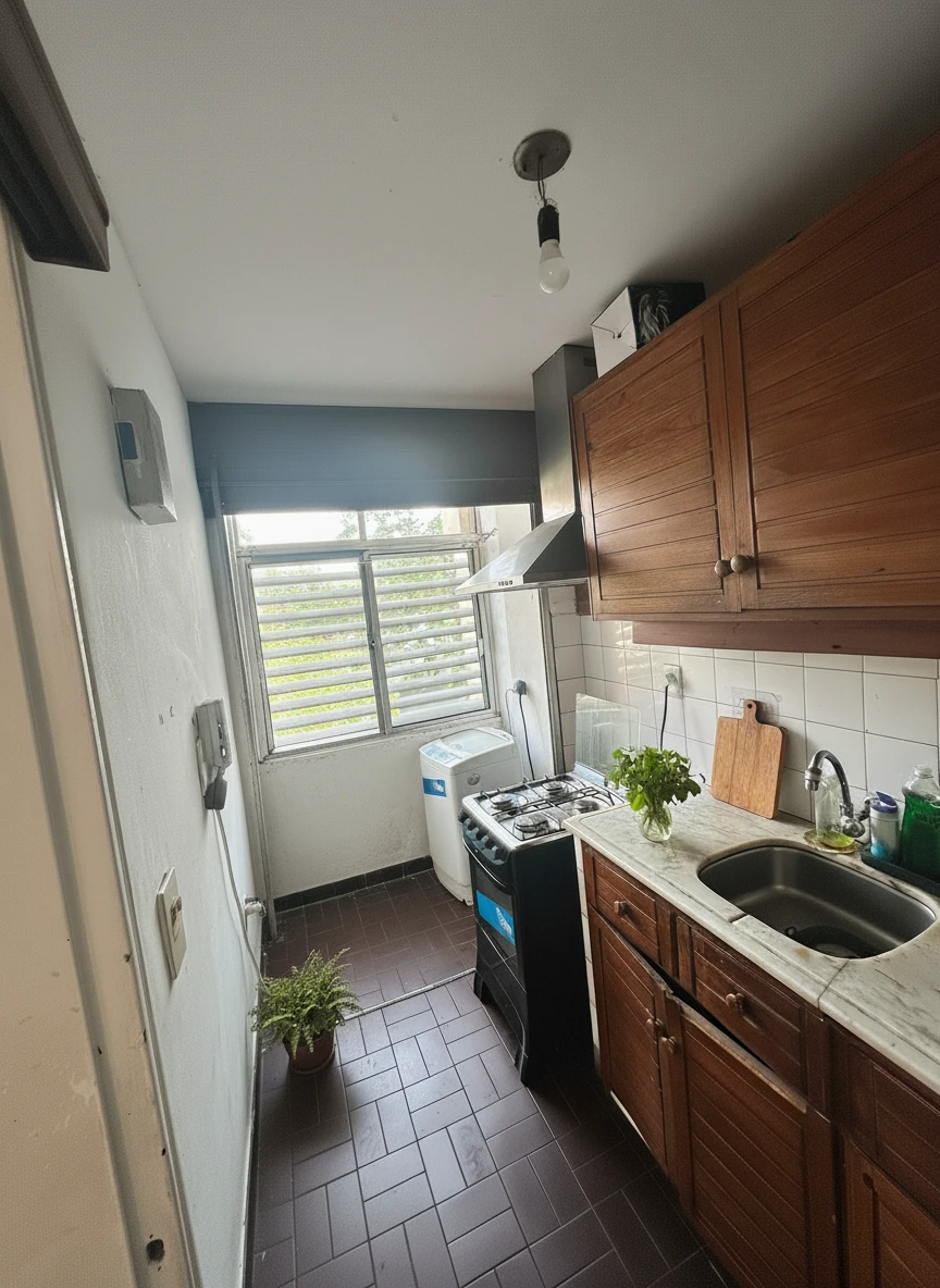 Cocina definida con placares bajo y sobre mesada y lavadero.