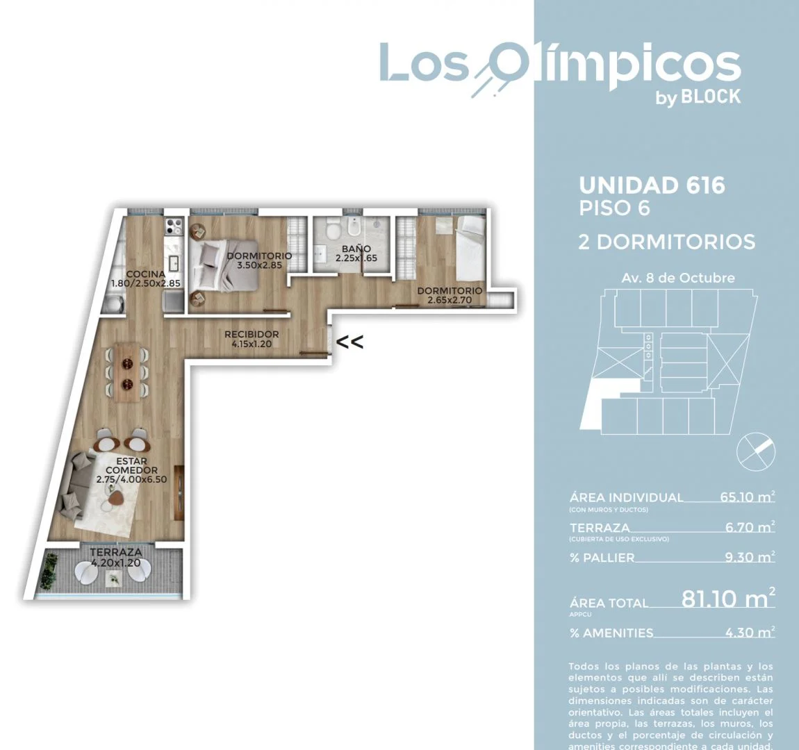 Treehouse bienes raíces Alquila! Apartamento 2 Dormitorios con patio en La Blanqueada, Montevideo. Los Olímpicos, ubicado en el corazón de La Blanqueada 8 de Octubre a pasos de Luis A. de Herrera y Larrañaga. Una torre moderna de 10 pisos, con 160 unidades con terrazas y excelente luminosidad. En una zona de gran crecimiento y excelente conectividad a cualquier punto de la ciudad. Rodeado de múltiples servicios, centros de salud, numerosos centros educativos, servicios bancarios y supermercados. Cuenta en el último piso con SUM completamente equipado, parrillero y terraza con piscina, Gimnasio equipado y microcine. El apartamento: Ubicado en el piso 10 con disposición contrafrente, cuenta con 65,10 mts internos y 6,7 mts de terreza. Gastos comunes: $6500 - $7000 Garajes disponibles desde $4500 Garantías: Aseguradoras. -Listo para entrar a mediados de abril. . Caracteristicas: BALCON, COMEDOR, LAVADERO, LIVING, LIVING COMEDOR, CONEXI?N A INTERNET, PERIMETRAL, PERMITE MASCOTAS, PLACARD EN COCINA, SALA DE REUNIONES, LUZ ELECTRICA, PORTERO ELECTRICO, SAL?N DE USO COM?N, SANEAMIENTO, TELEFONO, WIFI, CONEXION PARA LAVARROPAS, RECEPCI?N, RAMPA PARA DISCAPACITADOS, TANQUE DE AGUA XINTEL (TBR-TBR-5444)