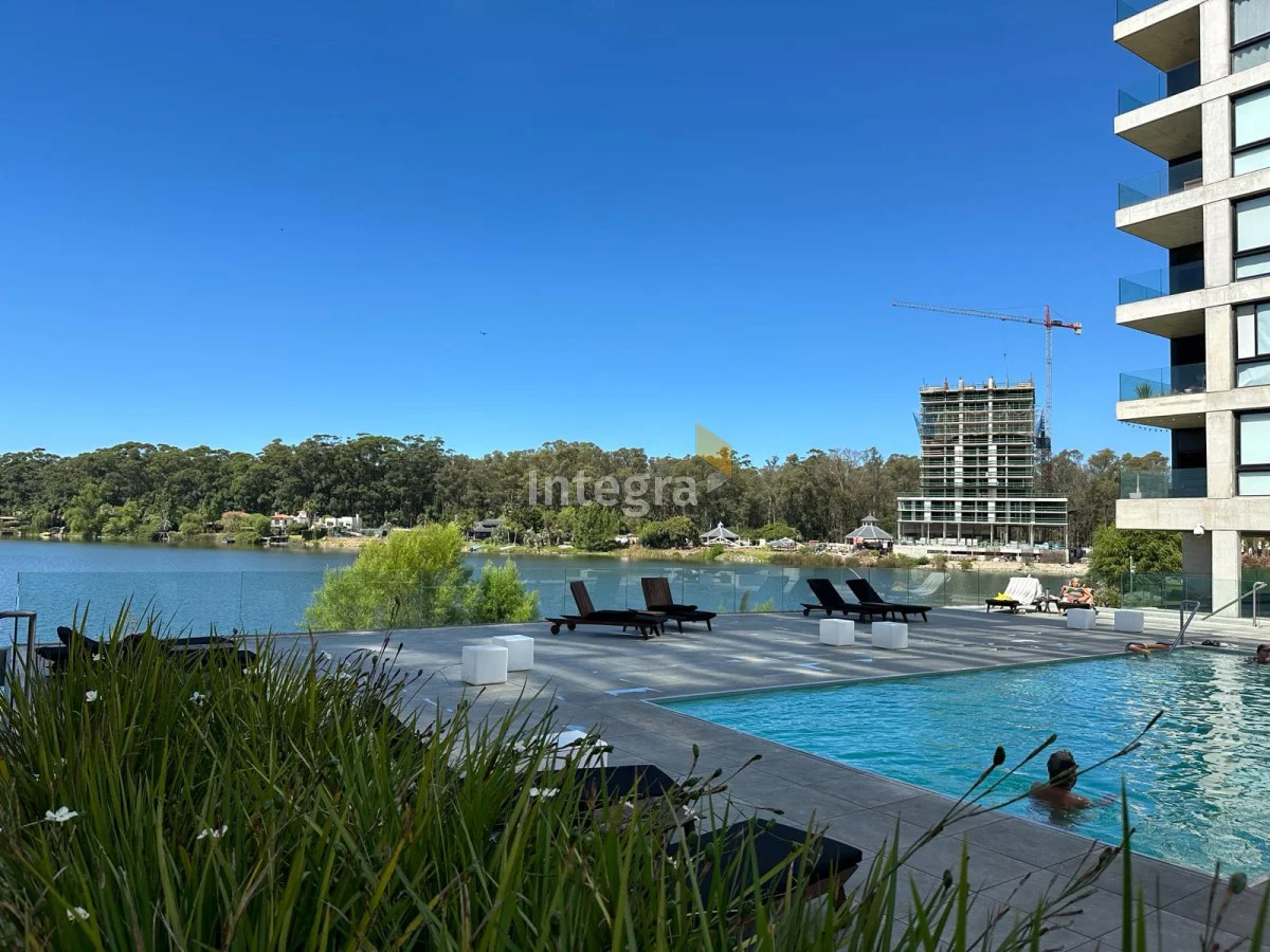 Unidad de 2 dormitorios y 2 baños (1 en suite). Cocina definida equipada. Living-comedor al contrafrente con balcón con parrillero, con vista al lago. Dos dormitorios, dormitorio principal con vestidor y baño en suite. Aire acondicionado. Dos garajes