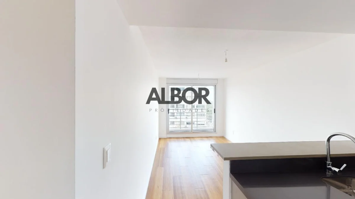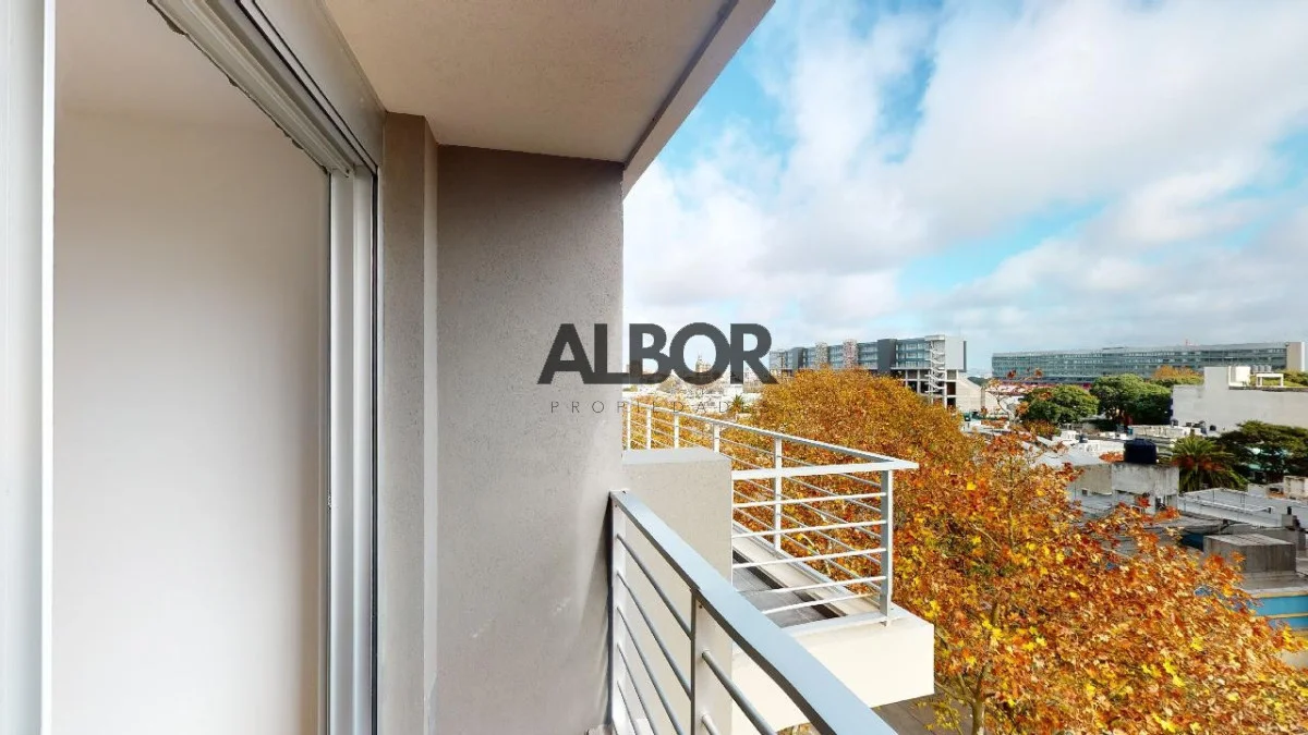 El apartamento en piso alto cuenta con living muy luminoso y con todo el sol, terraza, cocina américana con barra desayunadora, mueble aéreo y bajo mesada, dos dormitorios, baño completo.