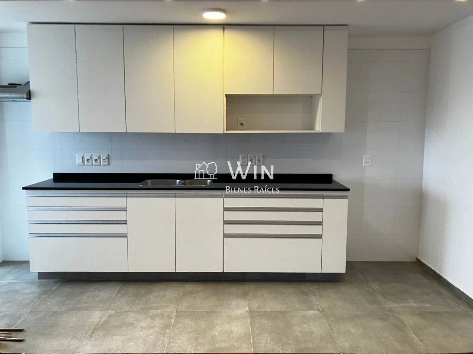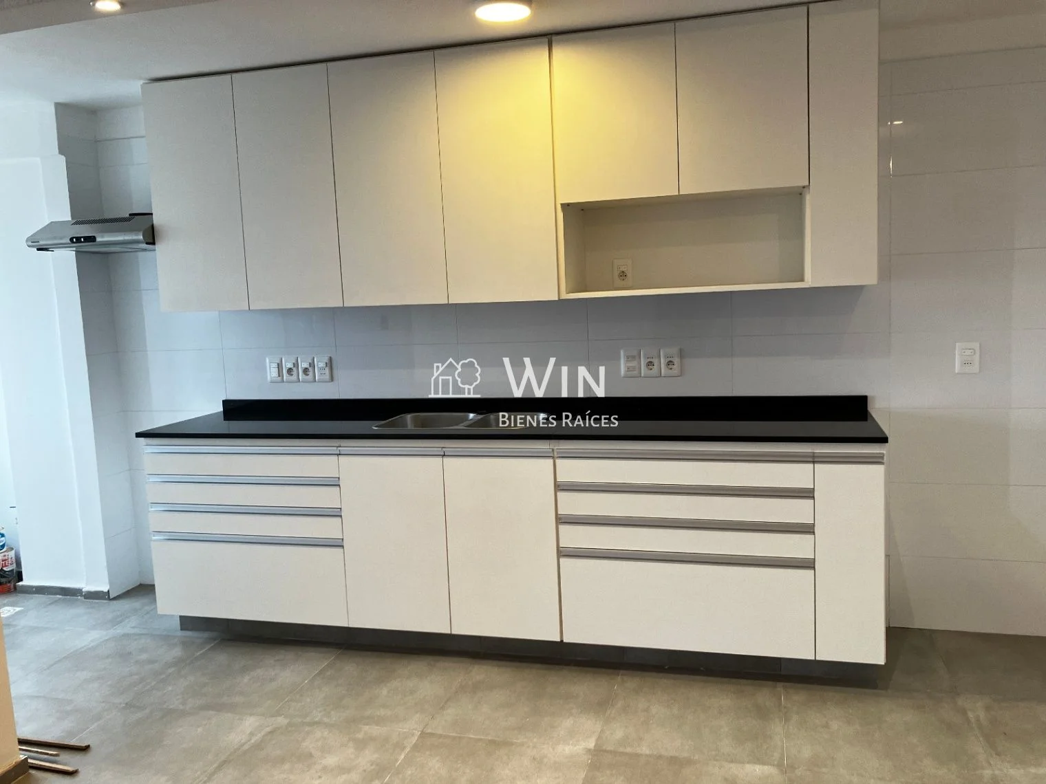 Cocina semi integrada con muebles aéreos y bajo mesada, incluye campana de extracción.
