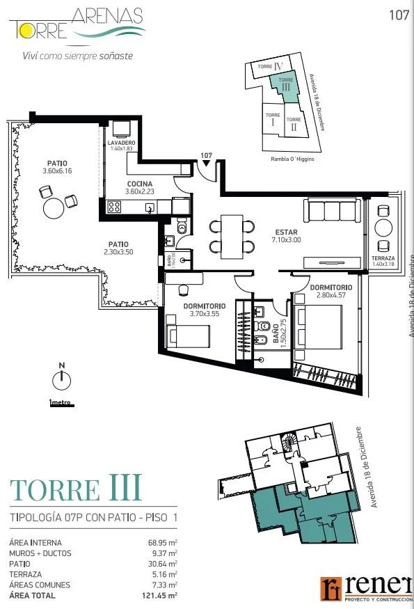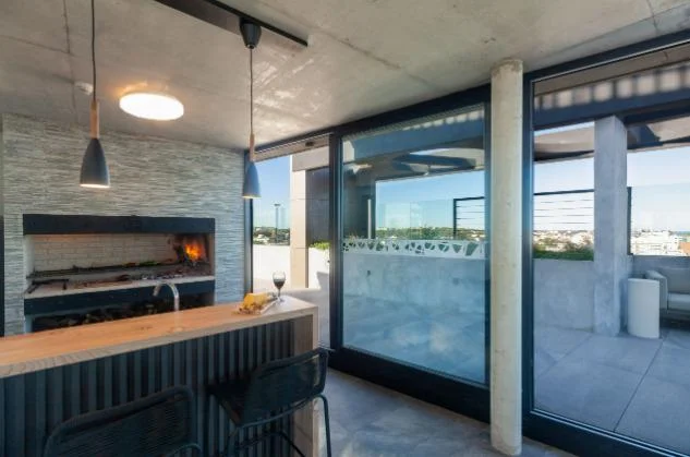 La cocina independiente, con área de lavadero, se conecta de manera armoniosa con un patio de 30m², perfecto para contemplar atardeceres con orientación oeste. La distribución del apartamento permite una ventilación cruzada que mantiene el ambiente fresco y aireado.