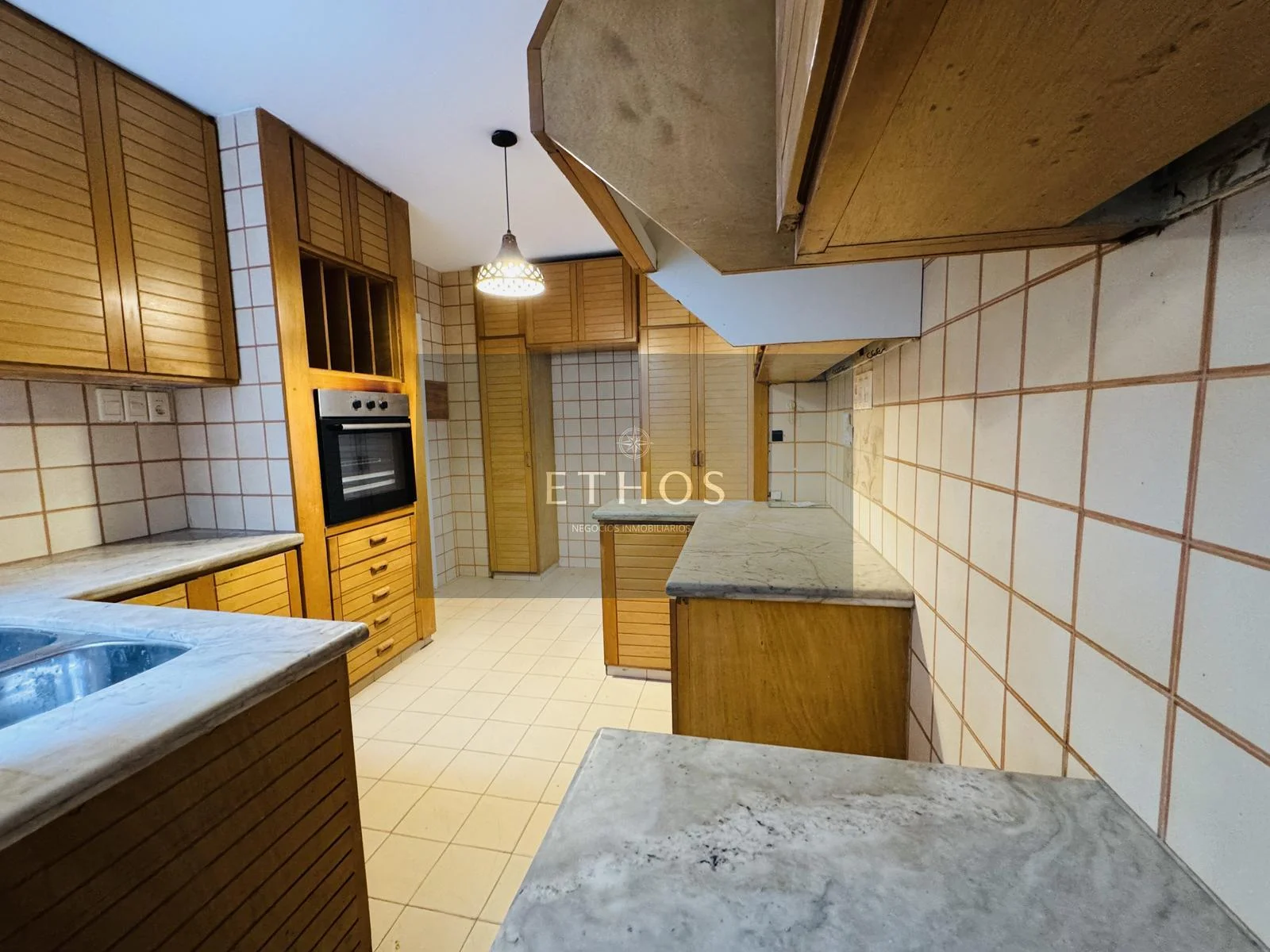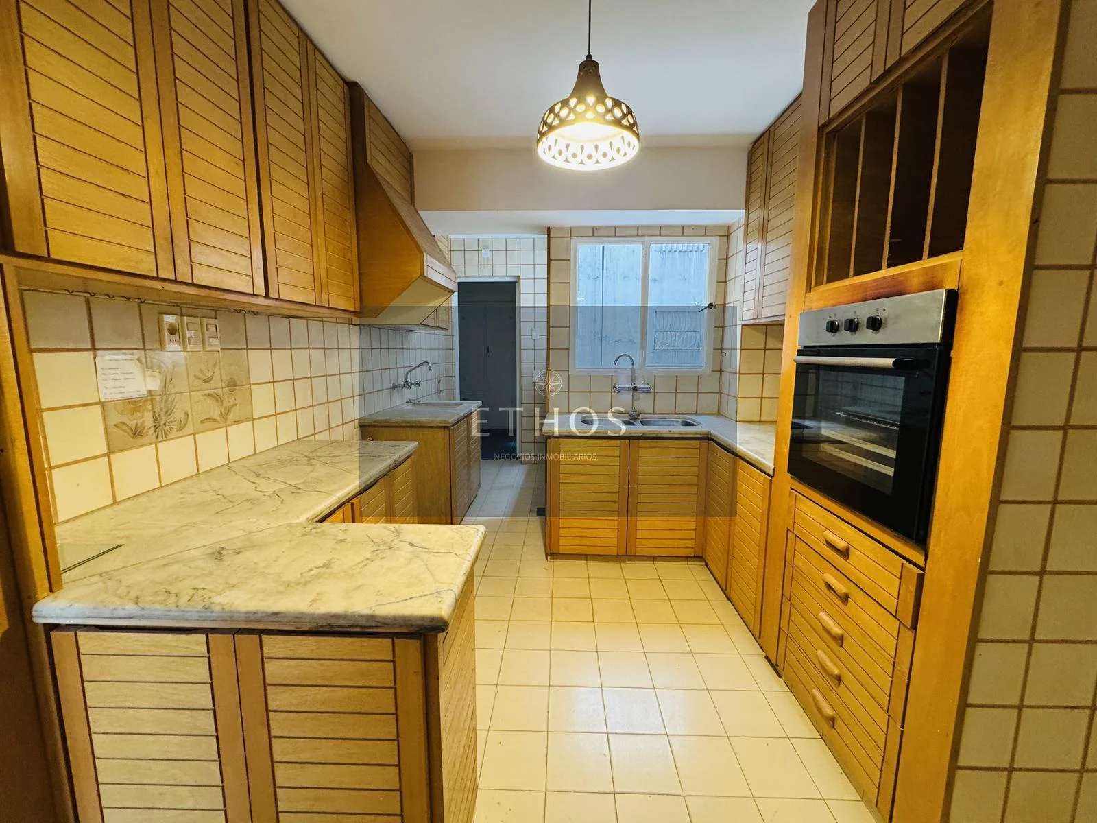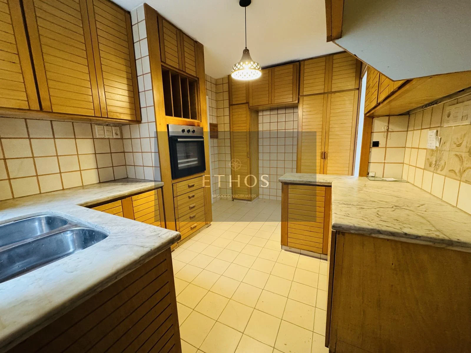 La cocina es definida, cómoda y funcional, (lo unico que no fue reciclado) con doble mesada, abundantes placares y sector de lavadero.