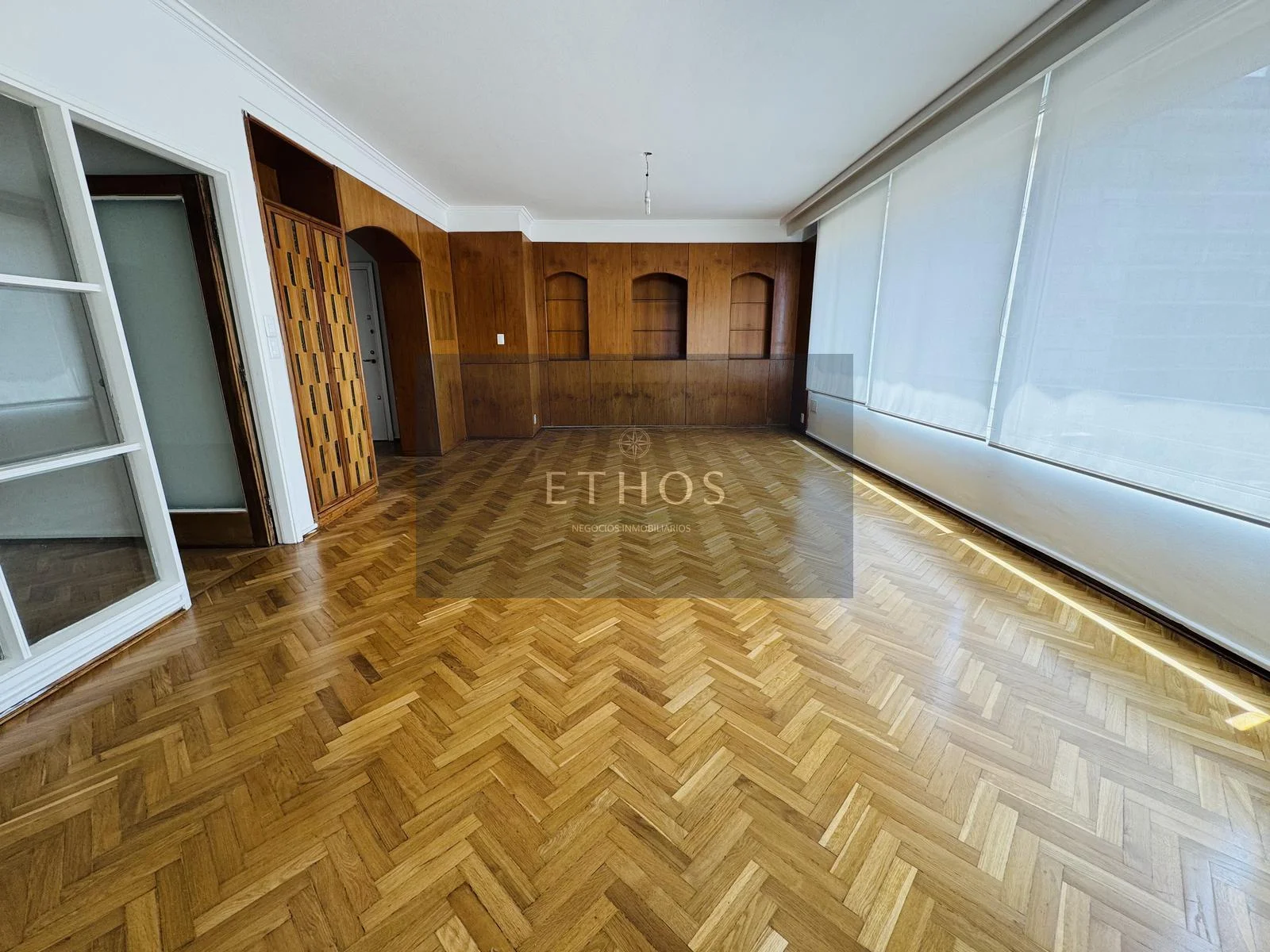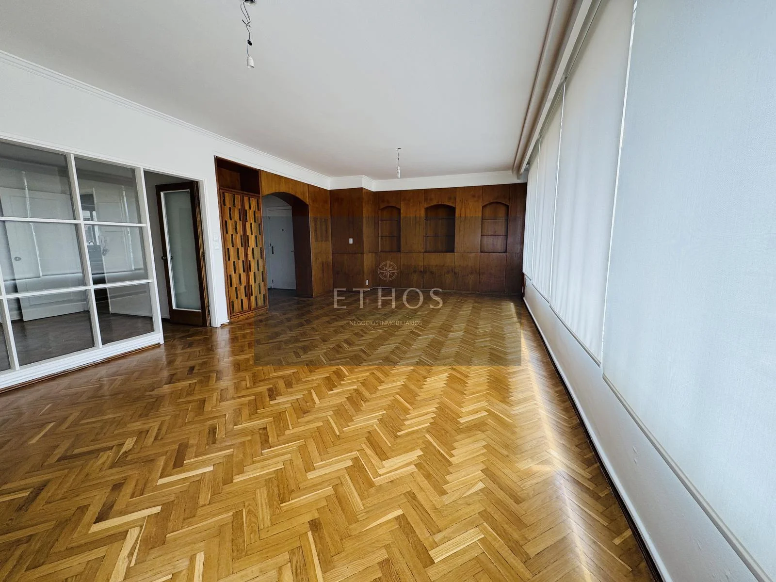 Al ingreso se accede a un vestíbulo que da paso a un amplio living con grandes ventanales,
