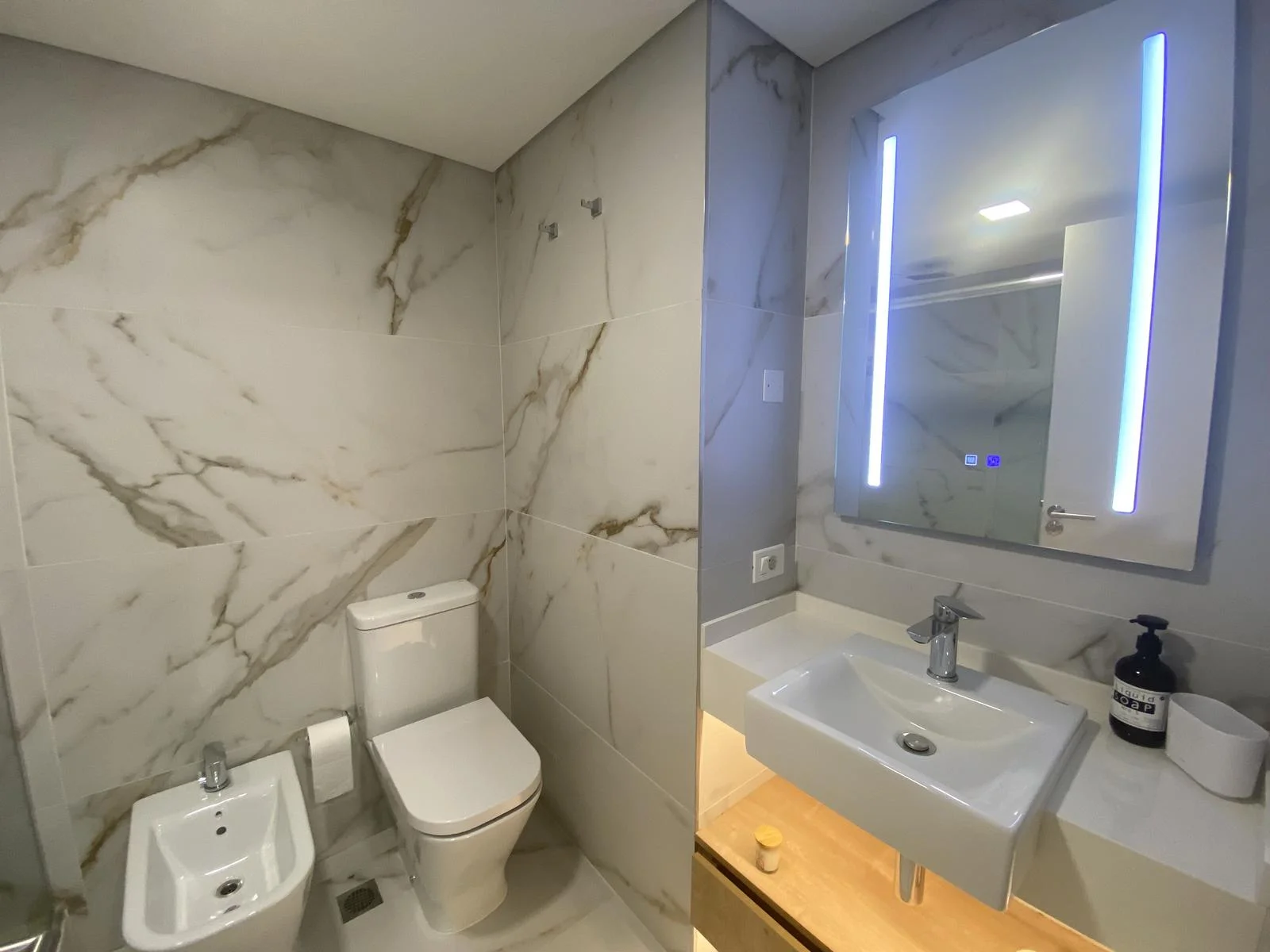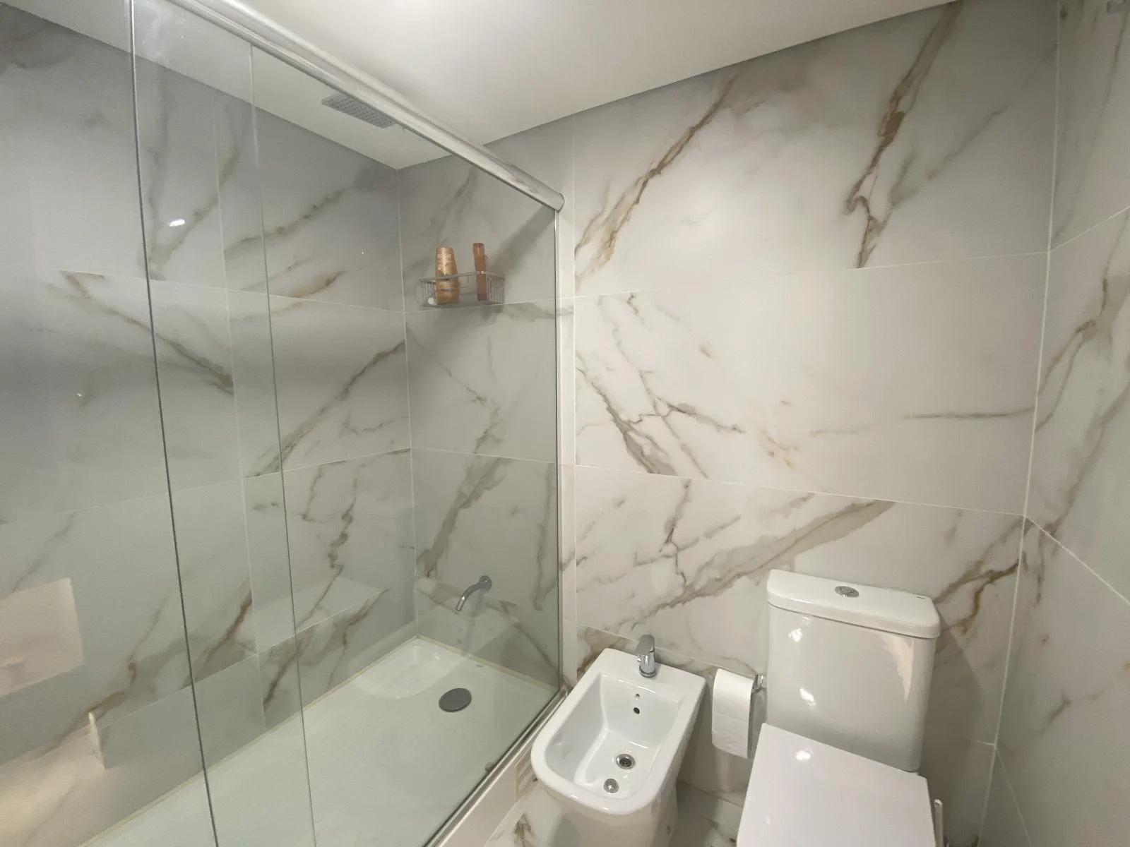 1 dormitorio con placares, baño completo, balcón terraza, cerradura digital, losa radiante, A/C.