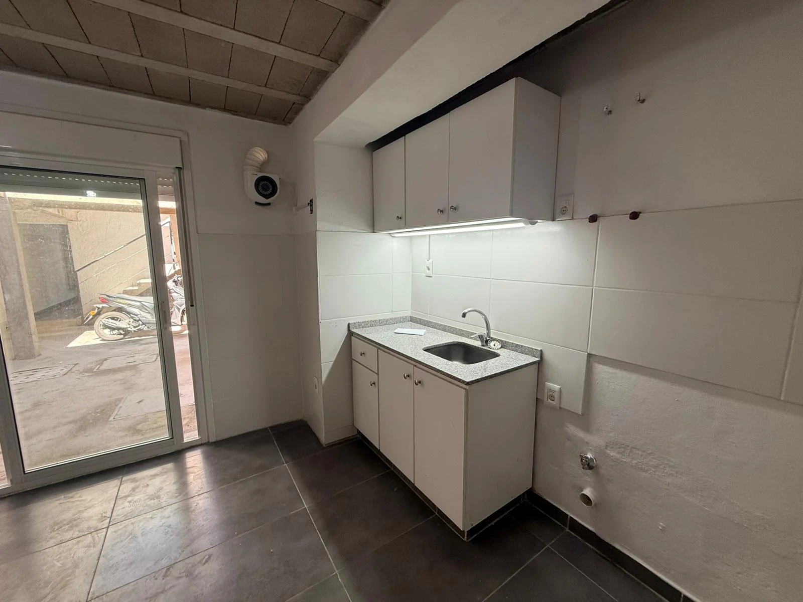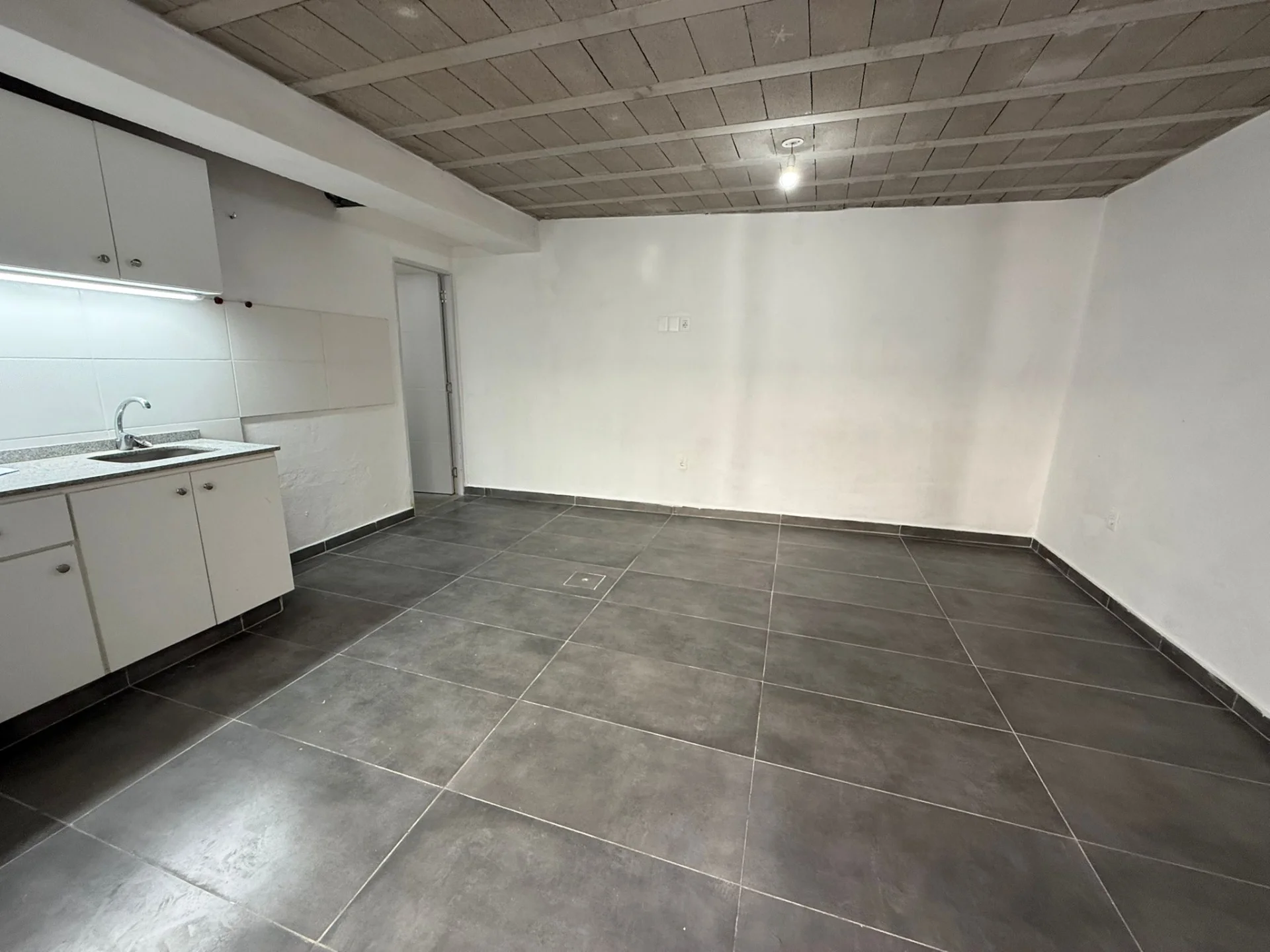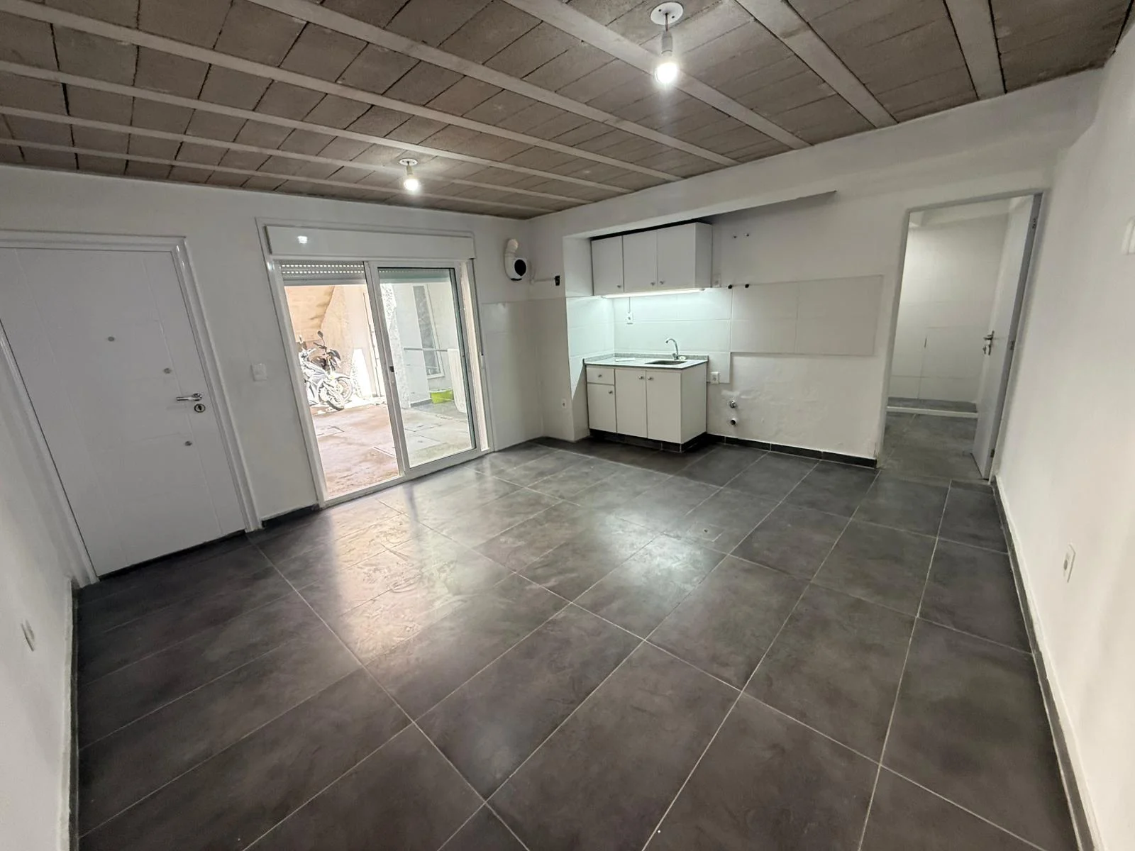 Living comedor amplio con cocina integrada con muebles bajo y sobre mesada.