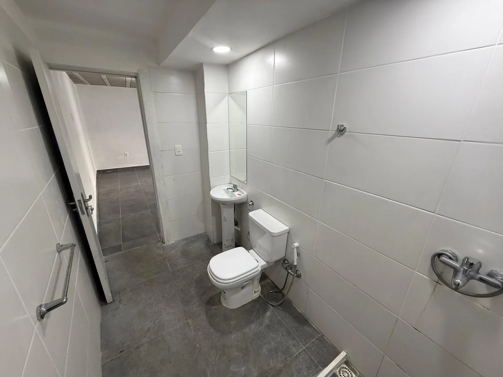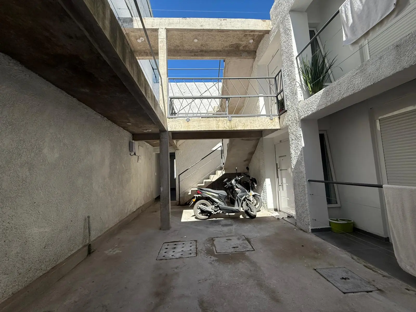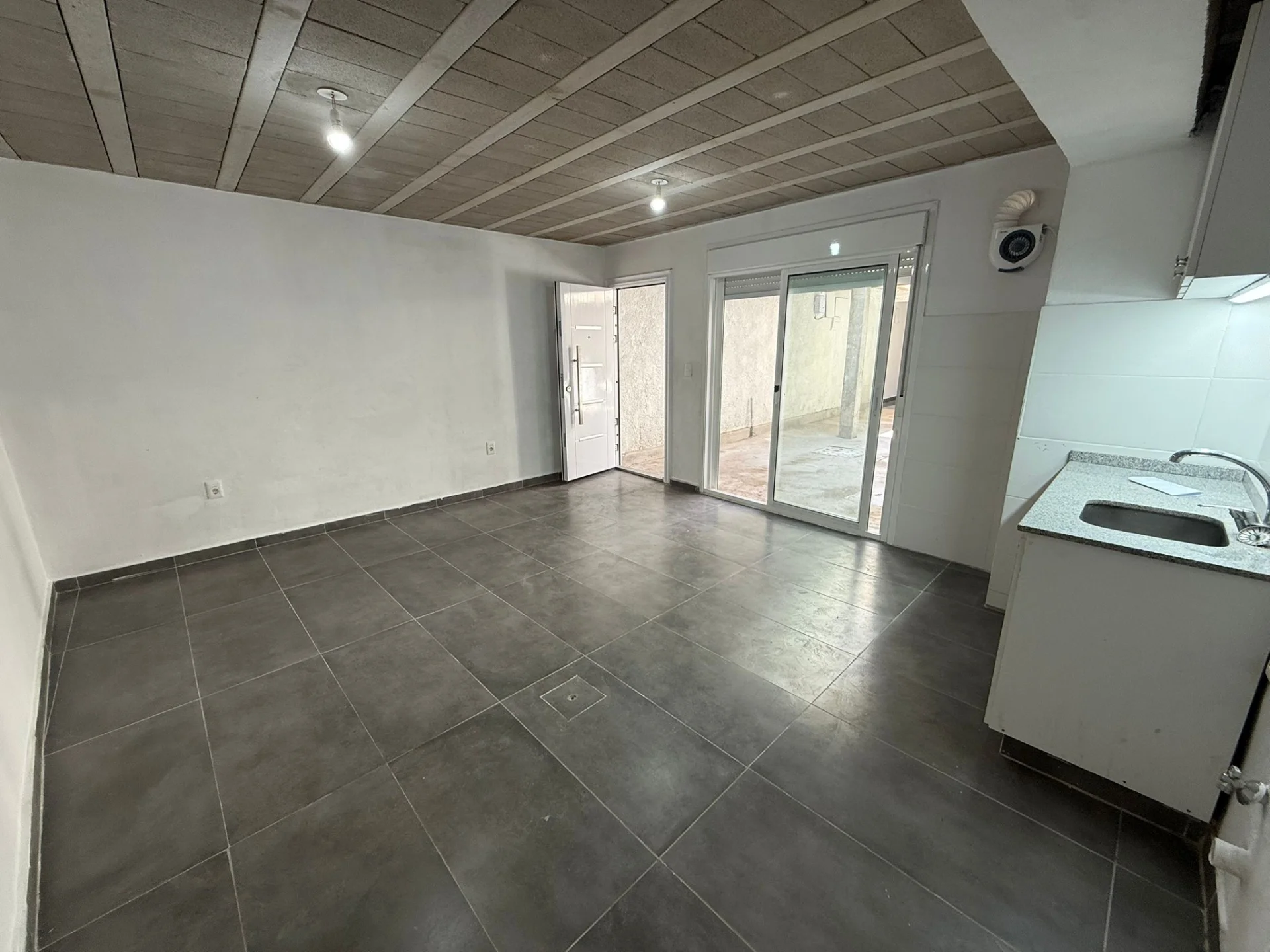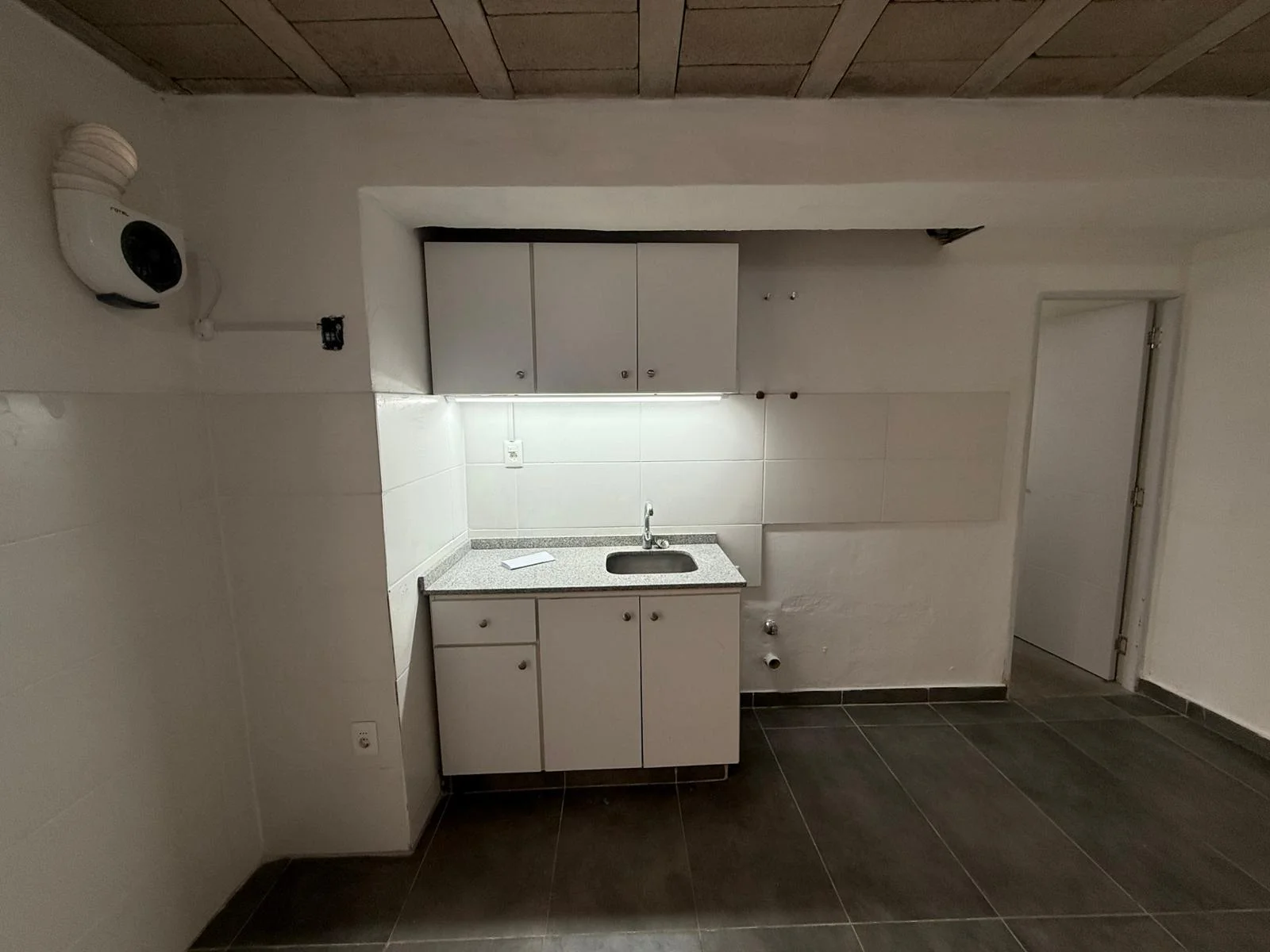 Living comedor amplio con cocina integrada con muebles bajo y sobre mesada.