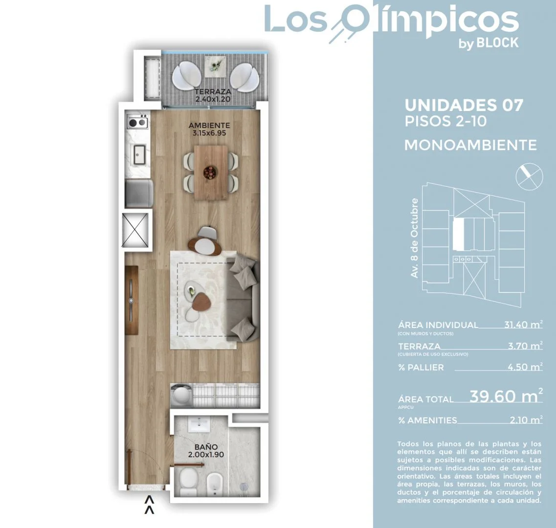 Treehouse bienes raíces Alquila! Apartamento monoambiente en La Blanqueada, Montevideo. Los Olímpicos, ubicado en el corazón de La Blanqueada 8 de Octubre a pasos de Luis A. de Herrera y Larrañaga. Una torre moderna de 10 pisos, con 160 unidades con terrazas y excelente luminosidad. En una zona de gran crecimiento y excelente conectividad a cualquier punto de la ciudad. Rodeado de múltiples servicios, centros de salud, numerosos centros educativos, servicios bancarios y supermercados. Cuenta en el último piso con SUM completamente equipado, parrillero y terraza con piscina, Gimnasio equipado y microcine. El apartamento: Ubicado en el piso 7 con disposición lateral despejado, cuenta con 31 mts internos y 3,7 mts de terraza. Gastos comunes: $3000 - $3500 Garantías: Aseguradoras. . Caracteristicas: BALCON, COMEDOR, LAVADERO, LIVING, LIVING COMEDOR, CONEXI?N A INTERNET, PERIMETRAL, PERMITE MASCOTAS, PLACARD EN COCINA, SALA DE REUNIONES, LUZ ELECTRICA, PORTERO ELECTRICO, SAL?N DE USO COM?N, SANEAMIENTO, TELEFONO, WIFI, CONEXION PARA LAVARROPAS, RECEPCI?N, RAMPA PARA DISCAPACITADOS, TANQUE DE AGUA XINTEL (TBR-TBR-5443)