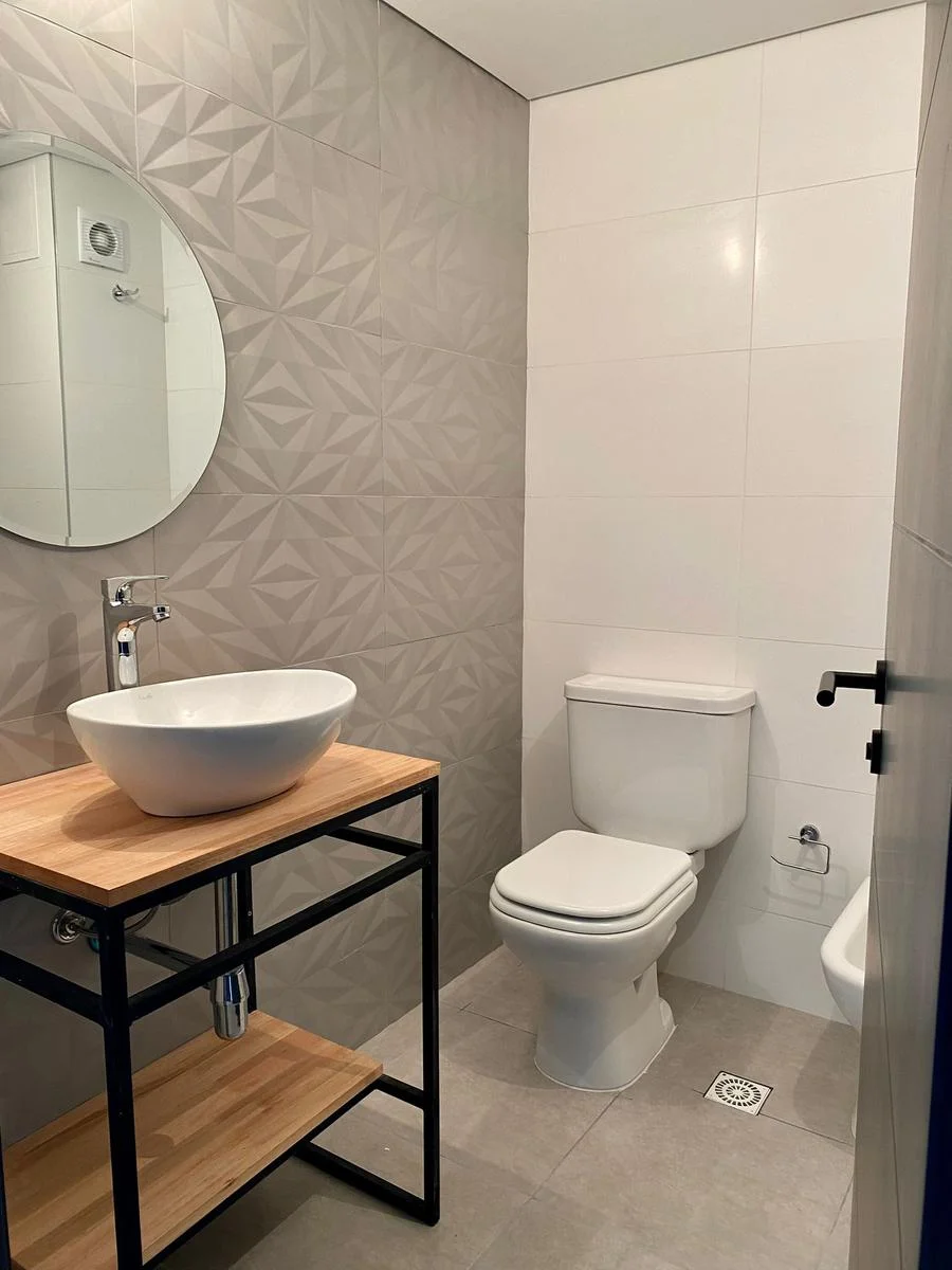 - Cocinas con mesadas de granito y pileta de acero inoxidable.