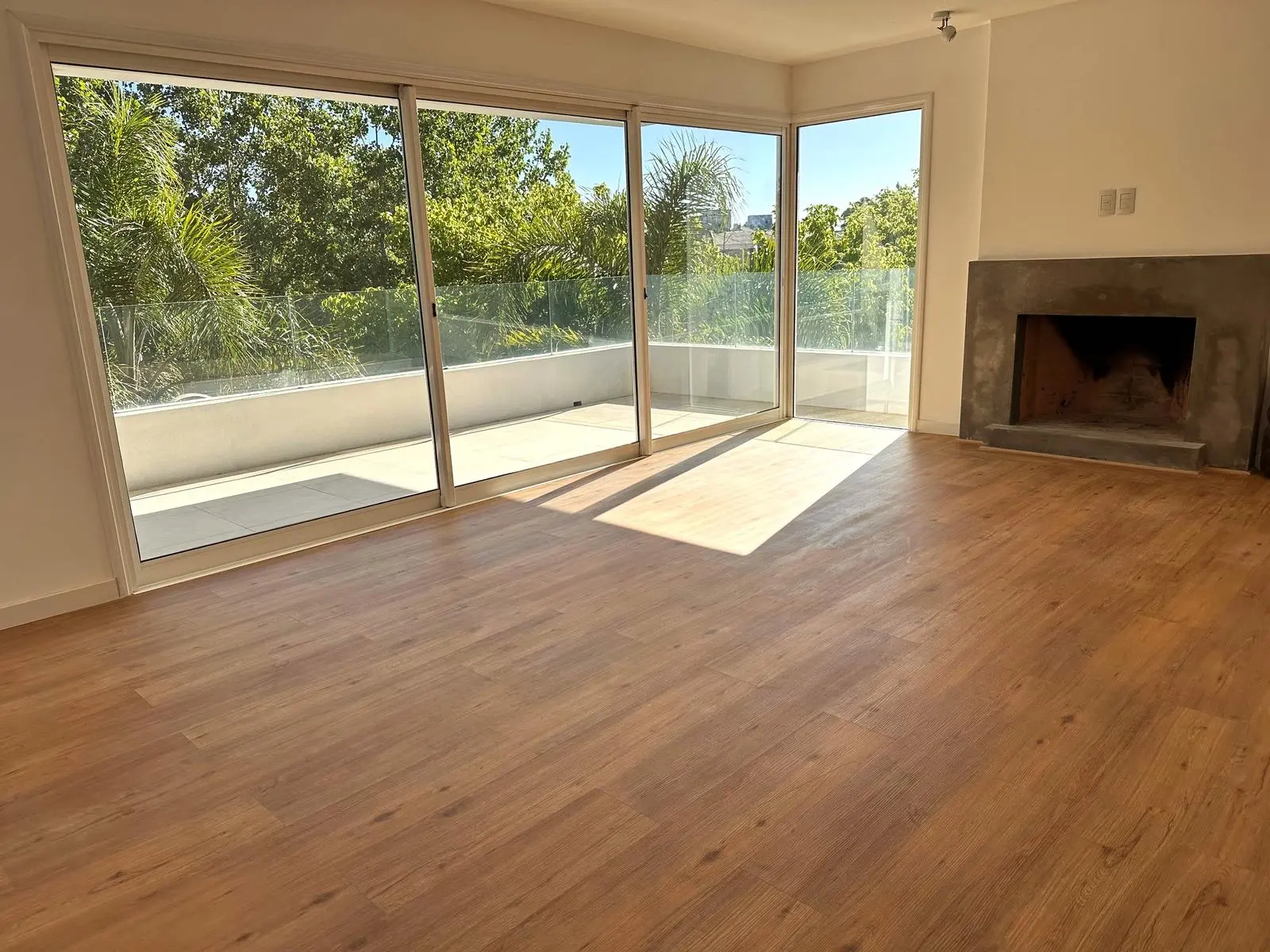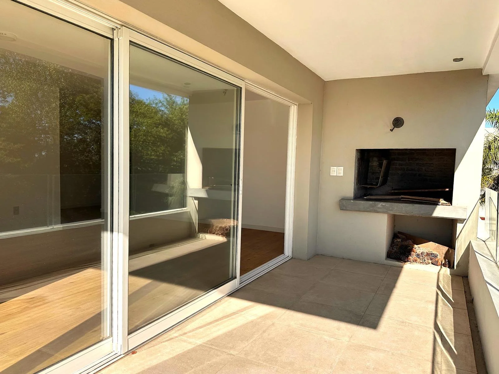 Entrada a living comedor amplio con mucha luz, estufa a leña y aire acondicionado, con salida a gran terraza con parrillero, todo orientado al oeste recibe sol en la tarde. Cocina definida con instalación para lavavajillas, lavadero con lavarropas y caldereta a gas.