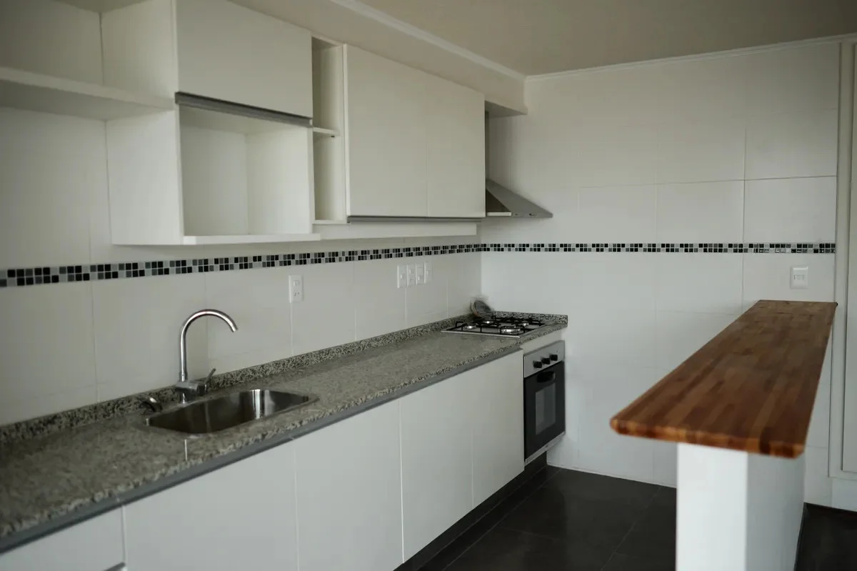 . Cocina integrada con placares, barra, anafe, horno y campana