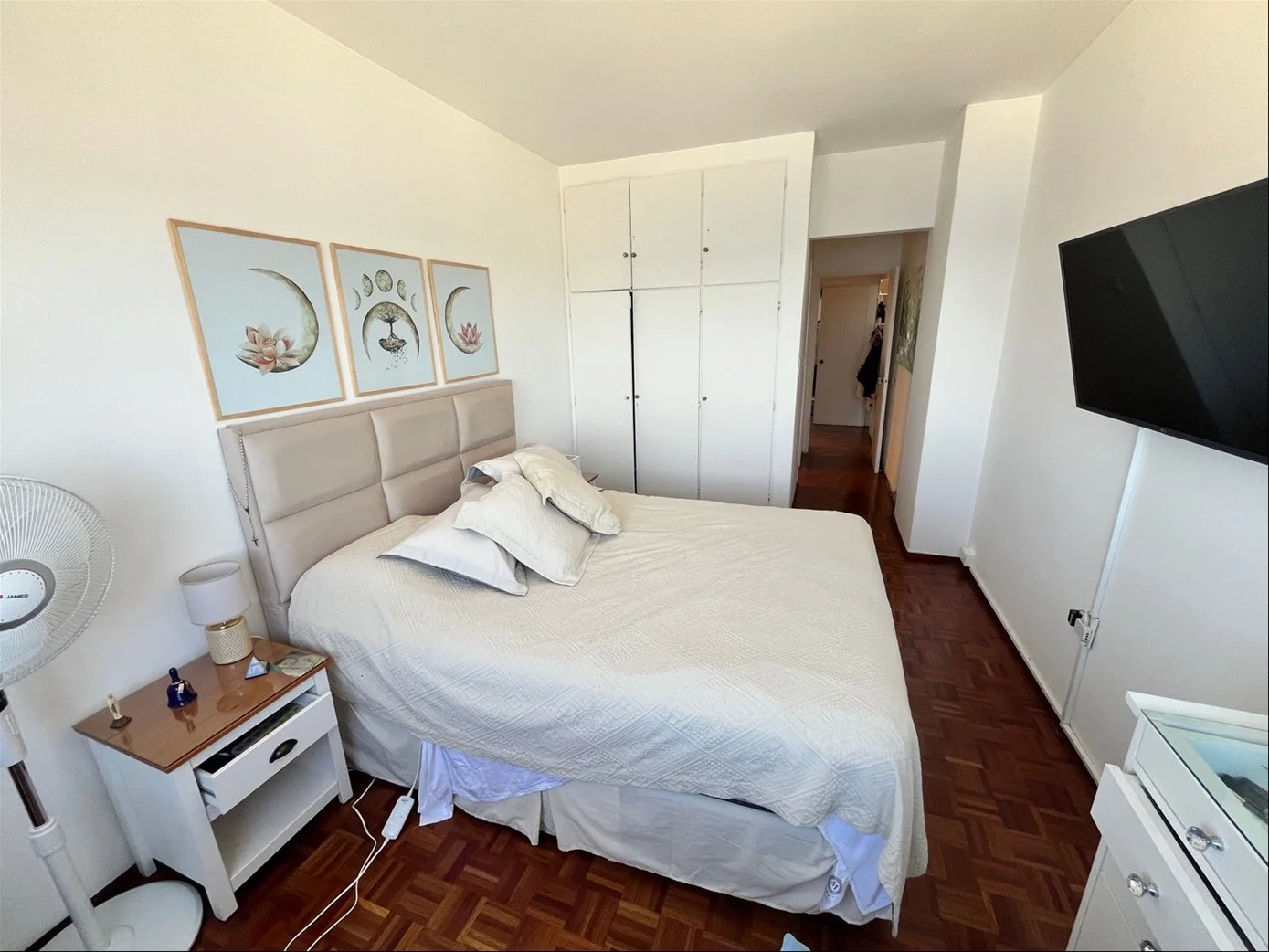 Consta de un amplio living comedor con salida a un balcón con cerramiento, con vista a la playa de Pocitos, ideal como extensión del living. Aire acondicionado en living. Hall distribuidor con dos dormitorios, el principal en suite, con bañera, de tamaño muy cómodo, con vista a la rambla, placares, doble cerramiento y persiana automatizada; un baño completo con ducha para uso del segundo dormitorio y como baño social, y un segundo dormitorio al contrafrente despejado y luminoso, también con persianas y placares.