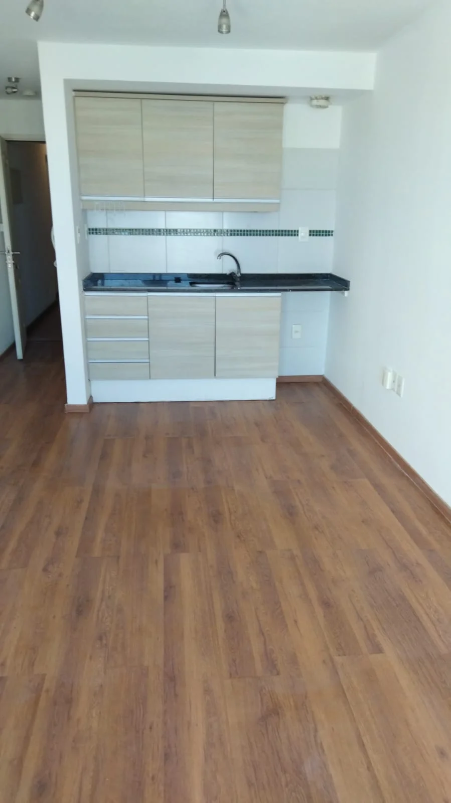 Son 24 m2, tiene kitchenette con placares, baño completo y queda con aire acondicionado.