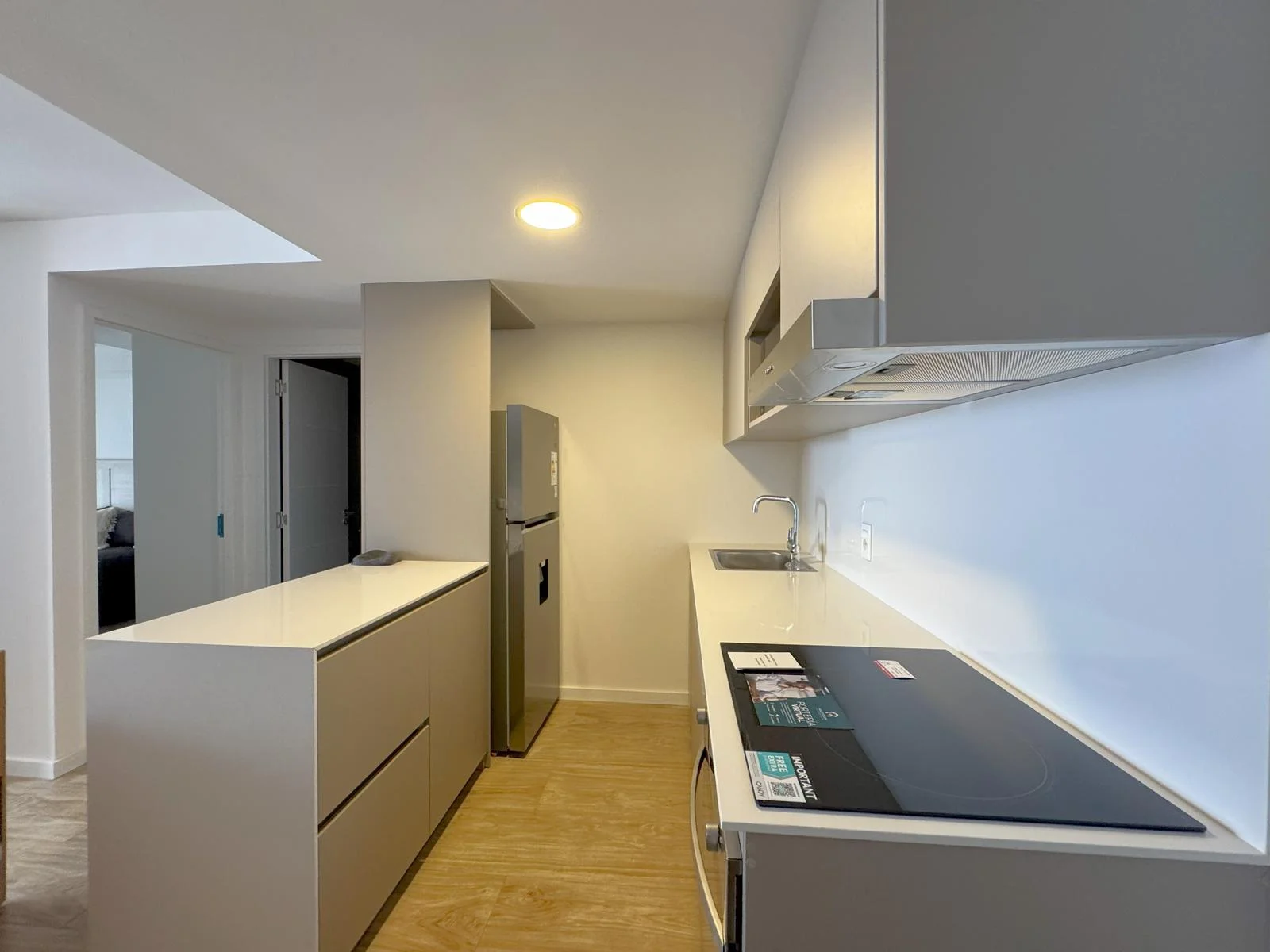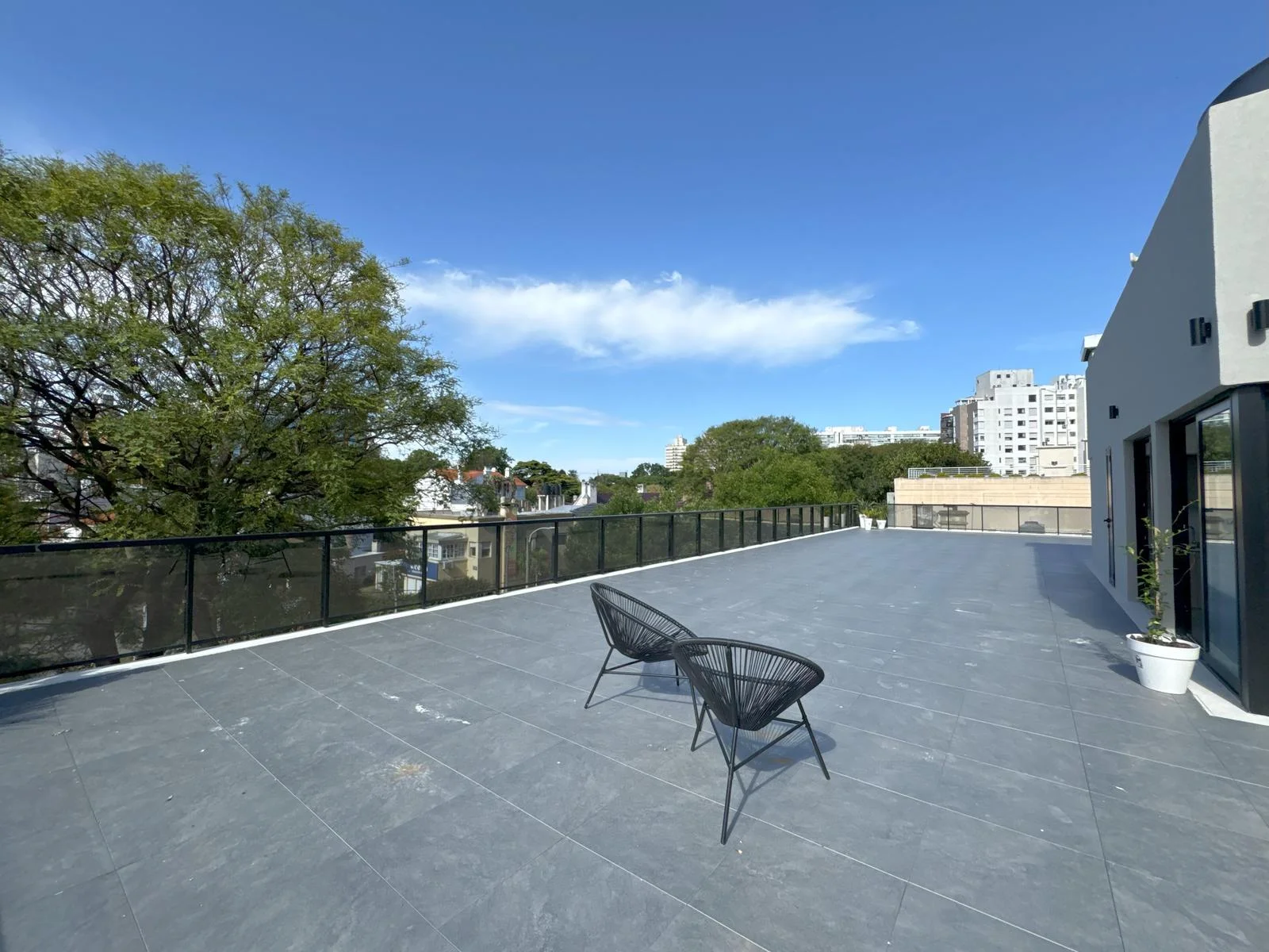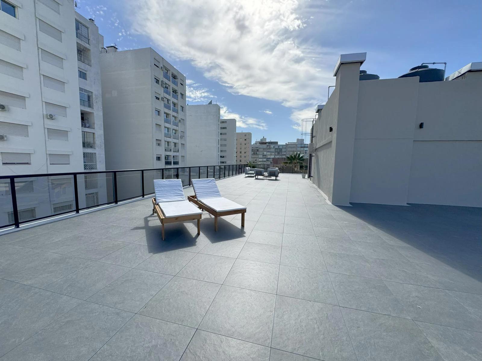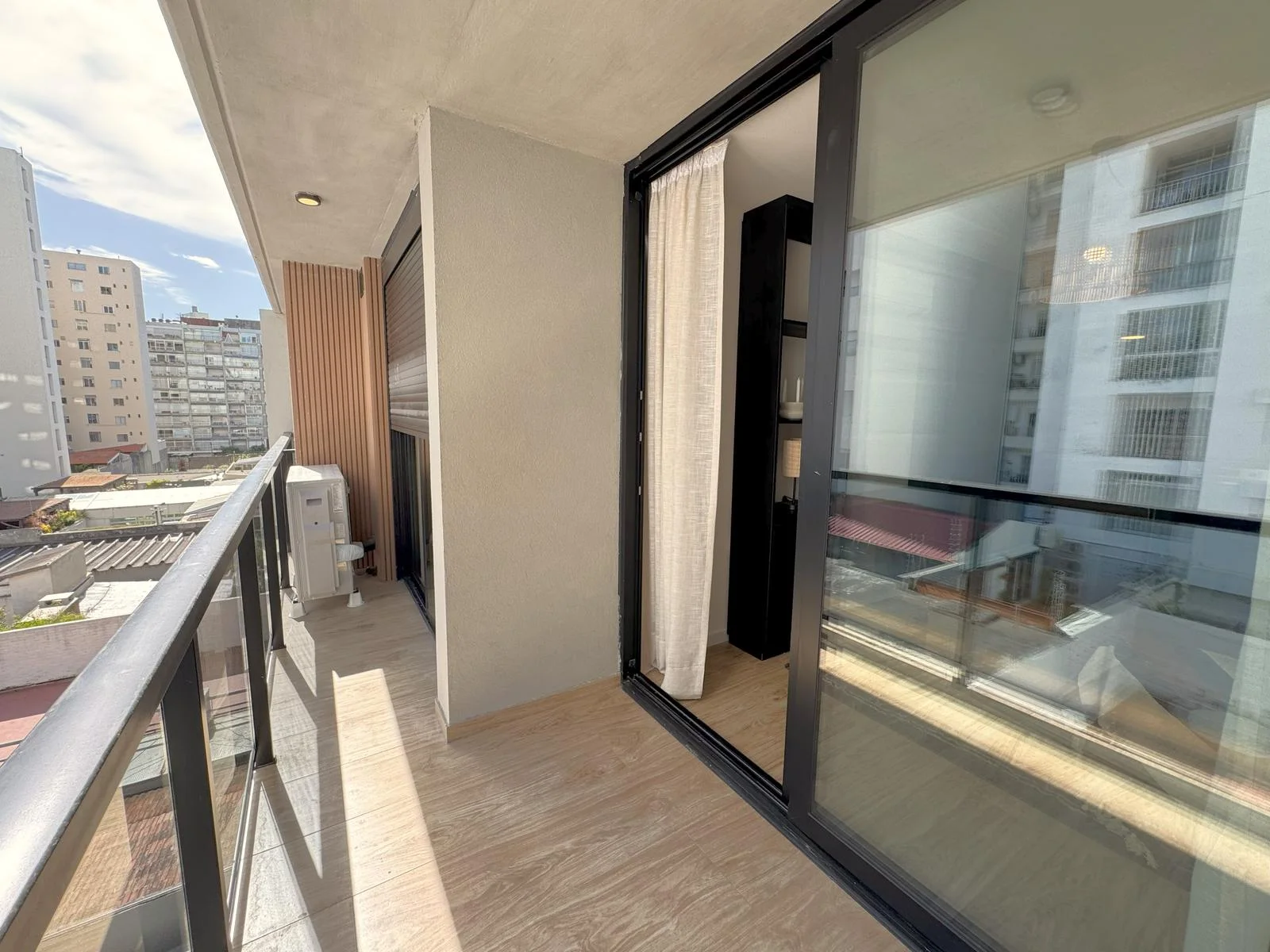 Entrada a living comedor luminoso y amplio, orientado al sur, completamente equipado, todo el equipamiento completamente a estrenar. Salida a balcón cómodo. Baño grande.