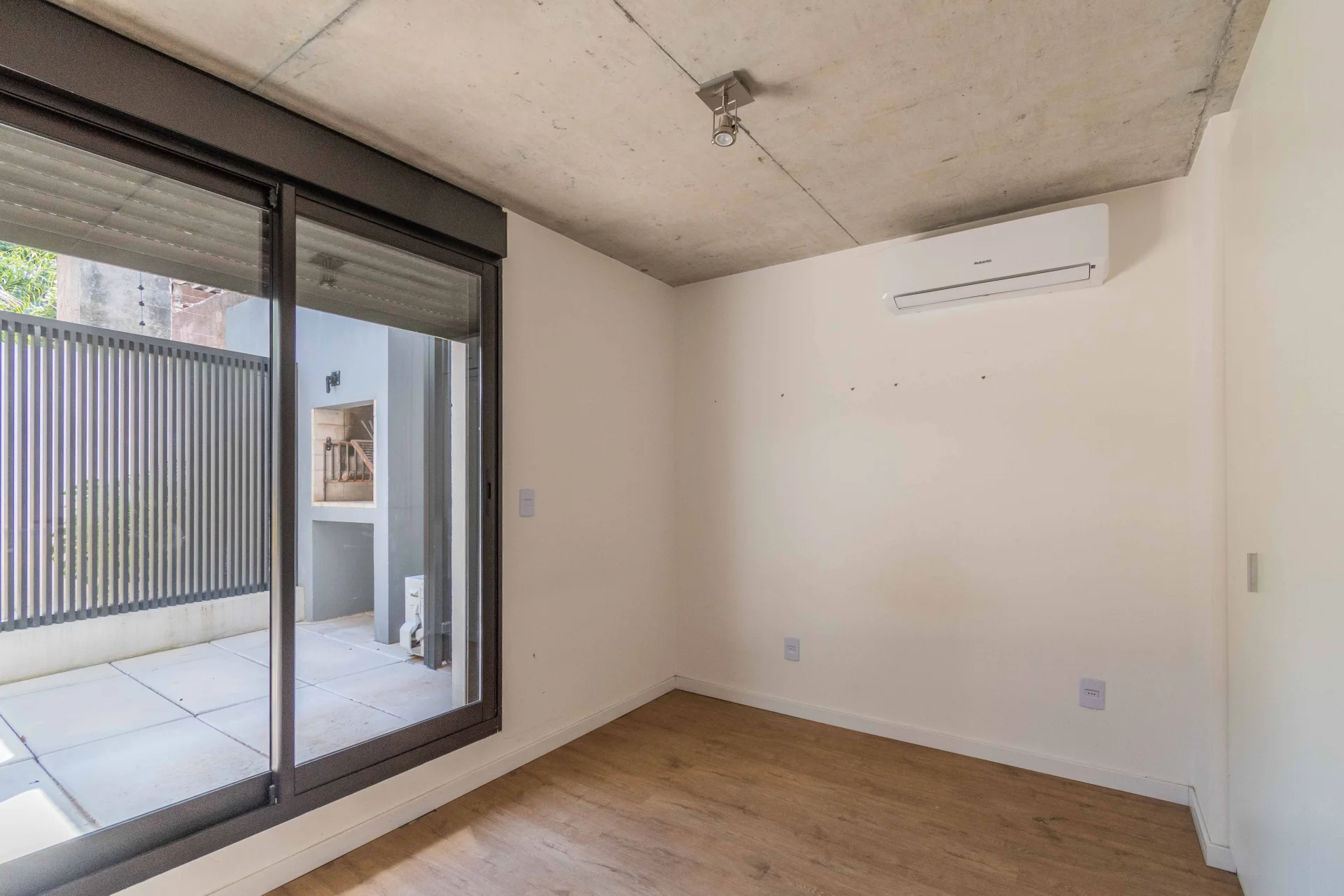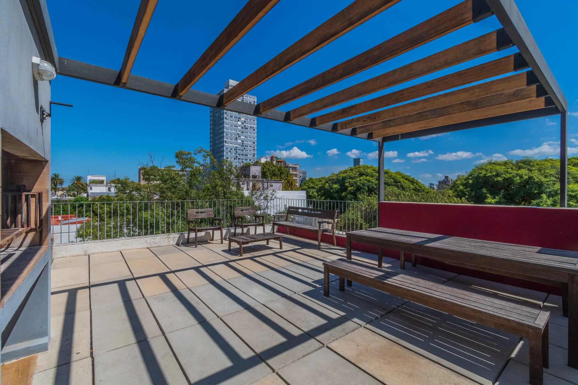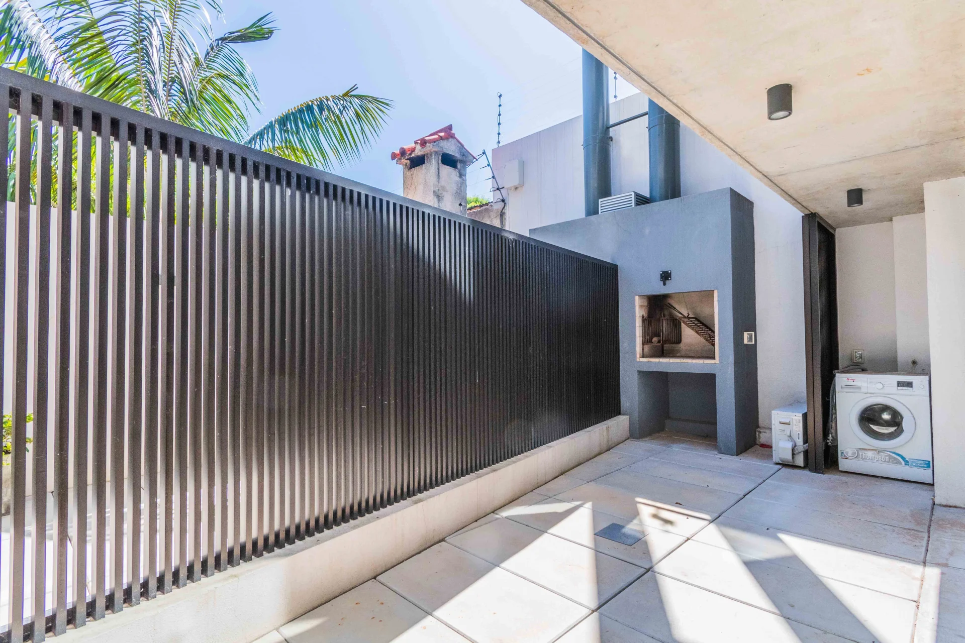 Patio con parrillero de uso exclusivo con doble acceso, desde el living y desde el dormitorio.