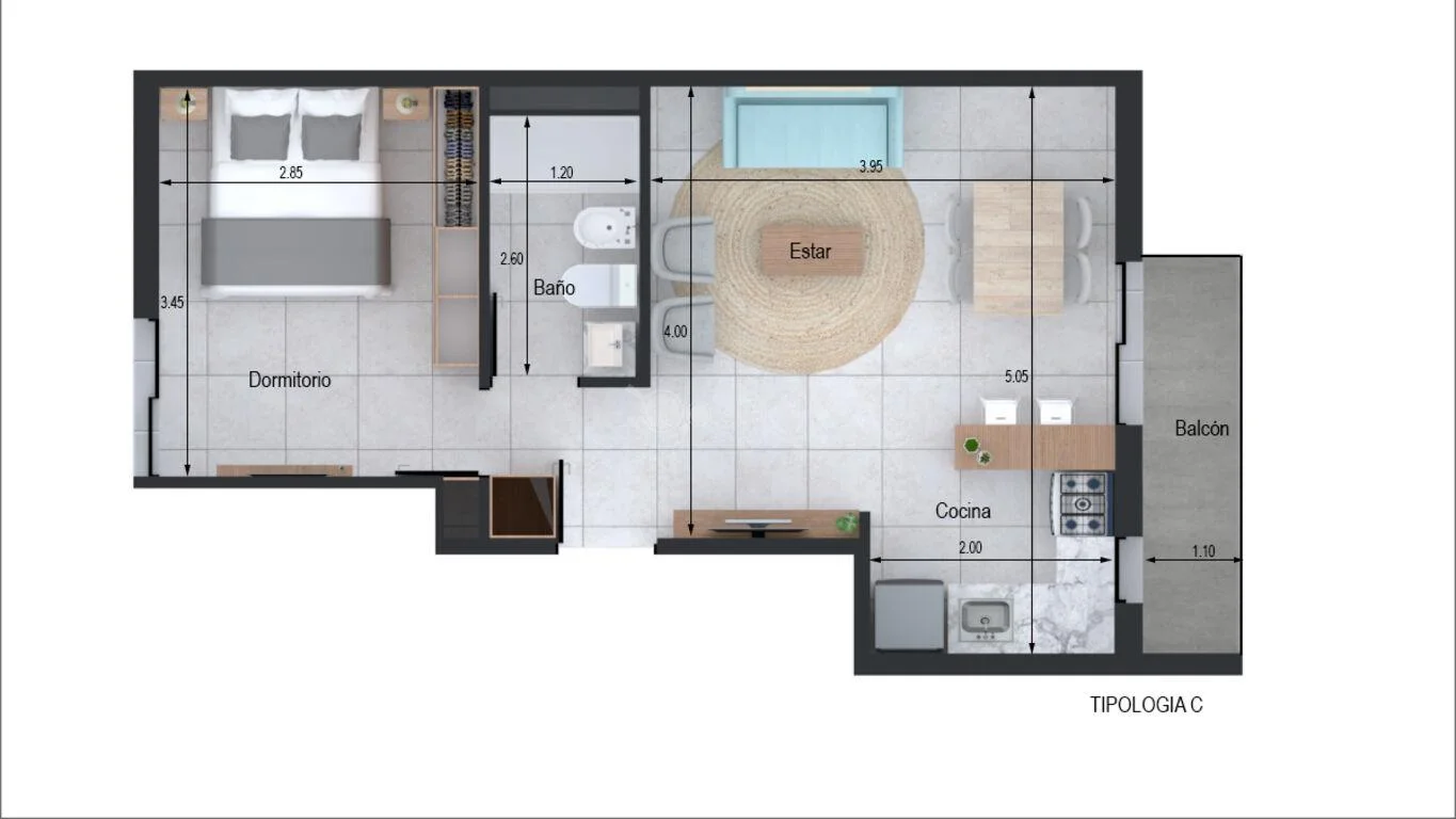 El apartamento se entrega con placard en dormitorio, campana extractora en cocina, aire acondicionado instalado en el living comedor. y en el dormitorio y calefón de 40lts.