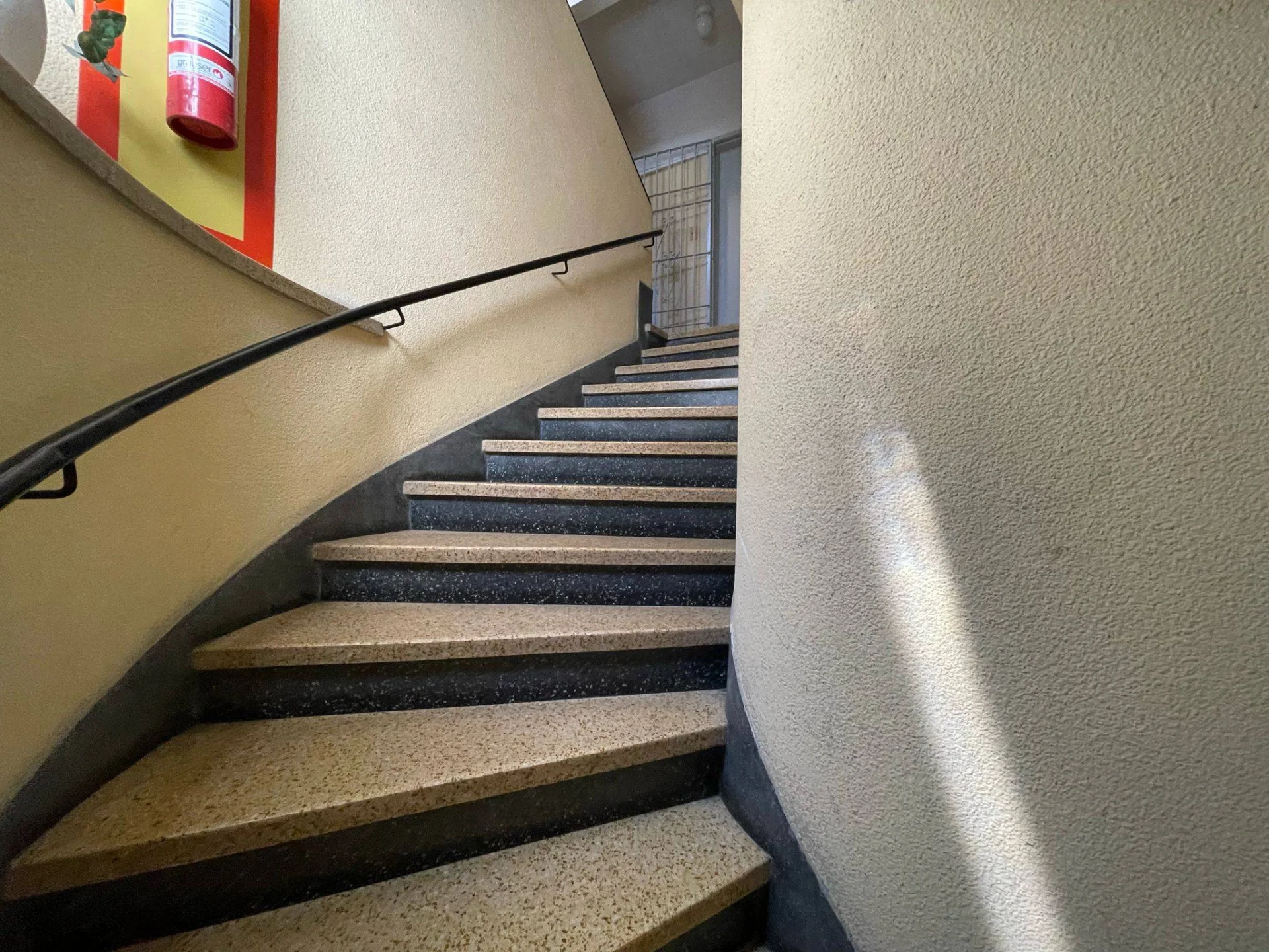 Apartamento de un dormitorio con balcon al frente en primer piso por escalera.