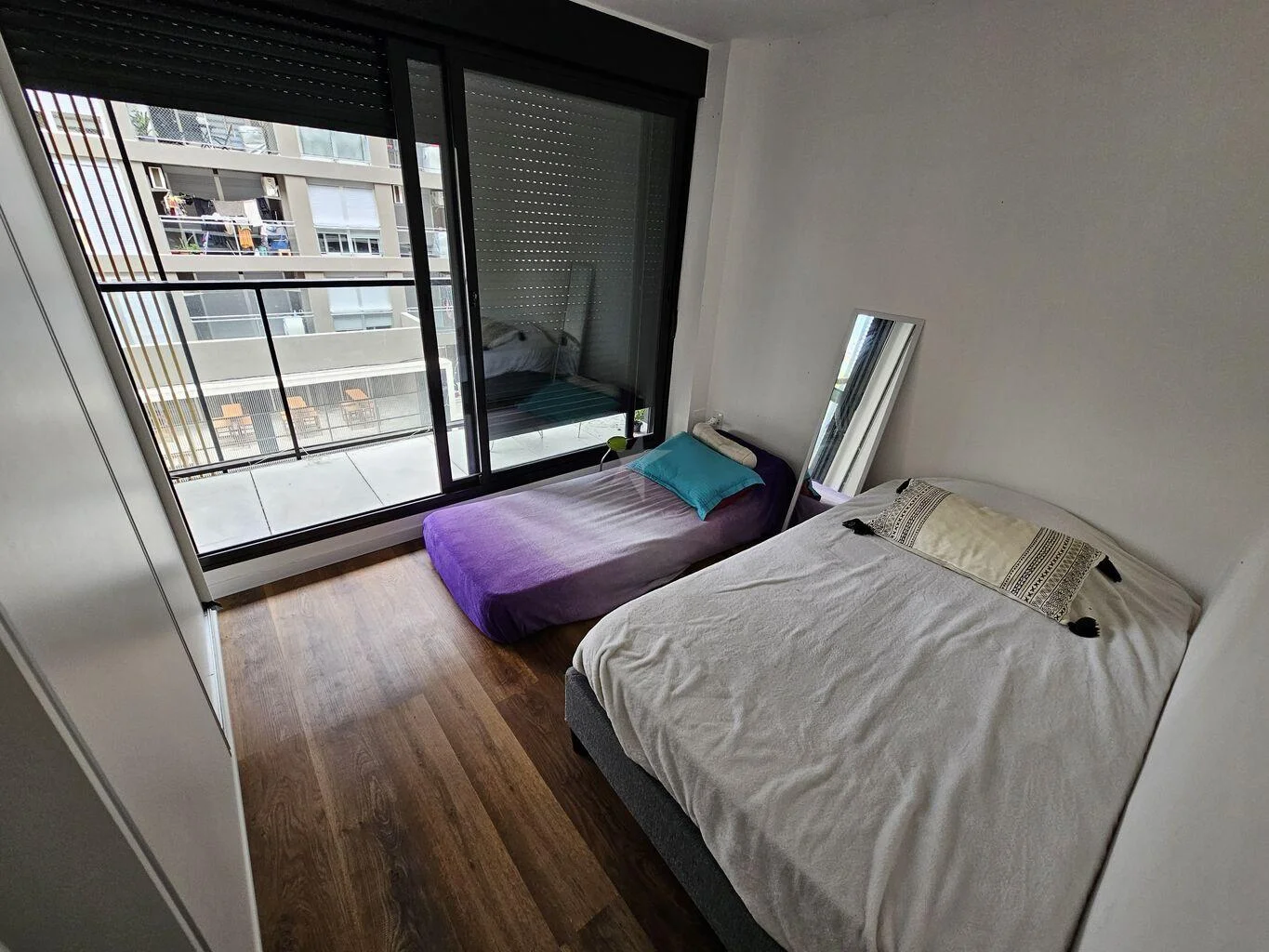 Living comedor, cocina abierta con profusión de placares. Dormitorio con placares y salida a terraza.