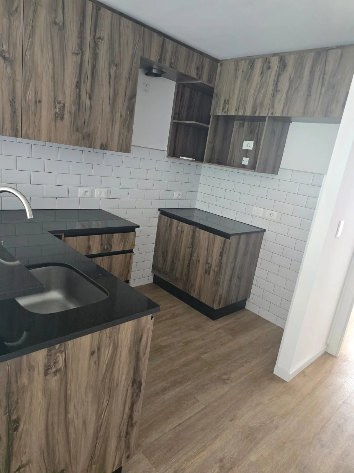 Apartamento con living comedor y cocina integrada.