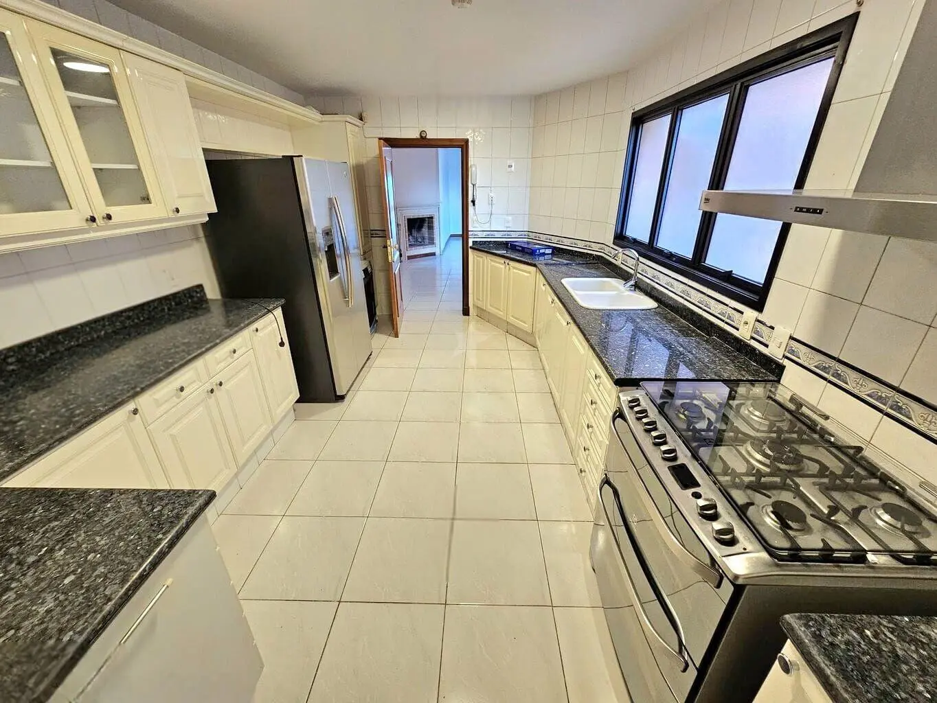 3 suites, principal al frente con vestidor, placar . jacuzzi y salida a terraza. Toilette. Amplia cocina equipada con : campana, cocina con doble horno, heladera y microondas.