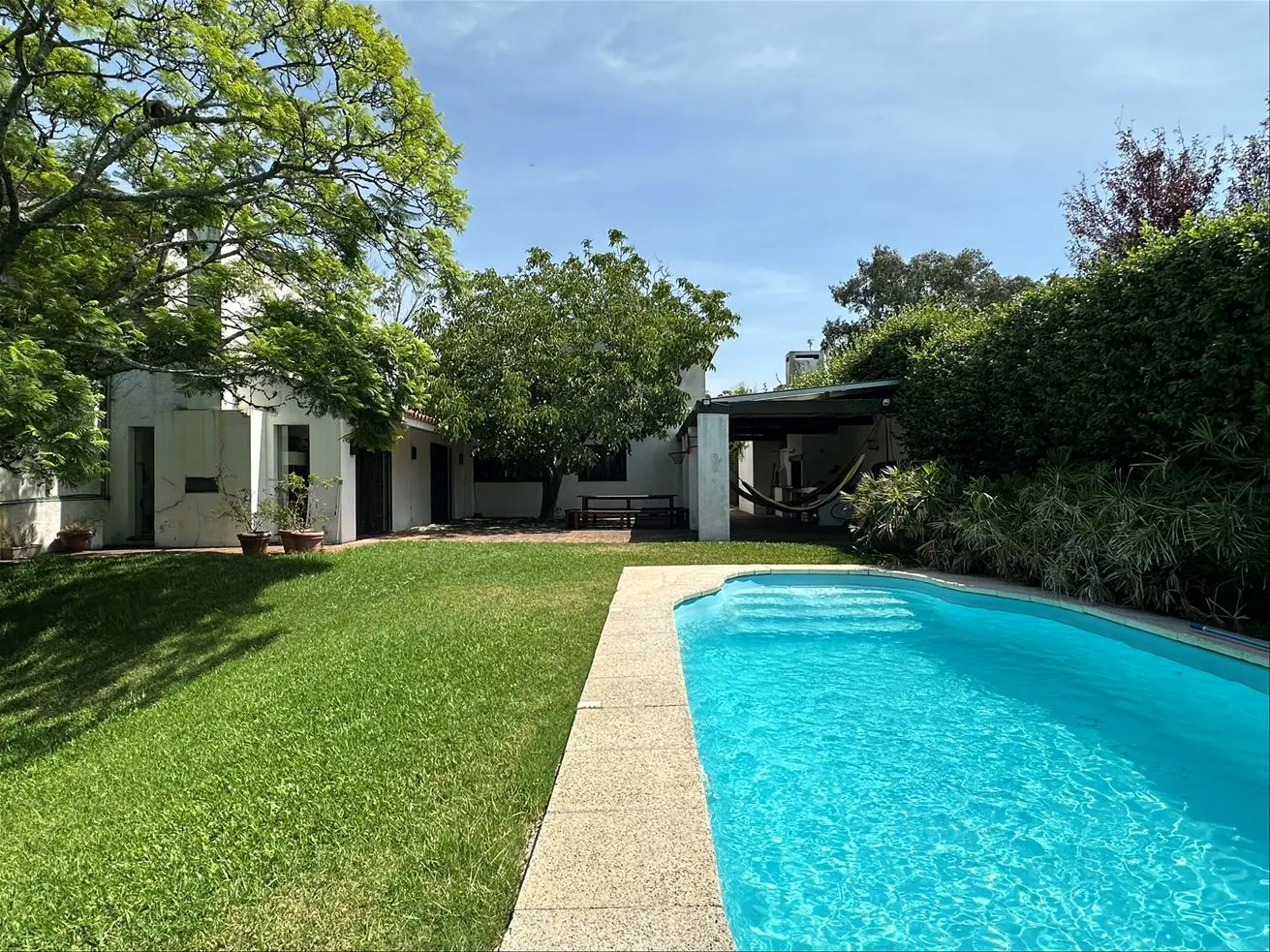 Muy lindo Jardín arbolado con piscina y parrillero techado.