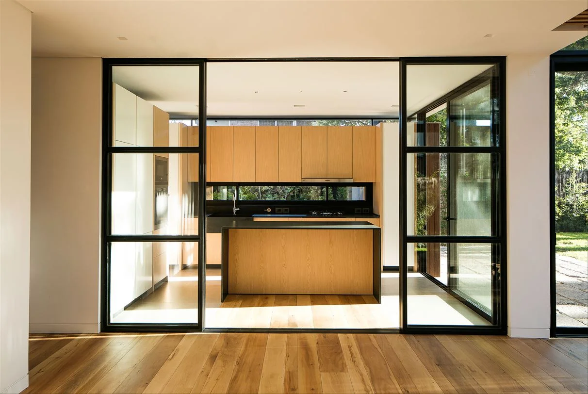La cocina tiene la posibilidad de integrarse al living comedor o permanecer cerrada por puertas corredizas.