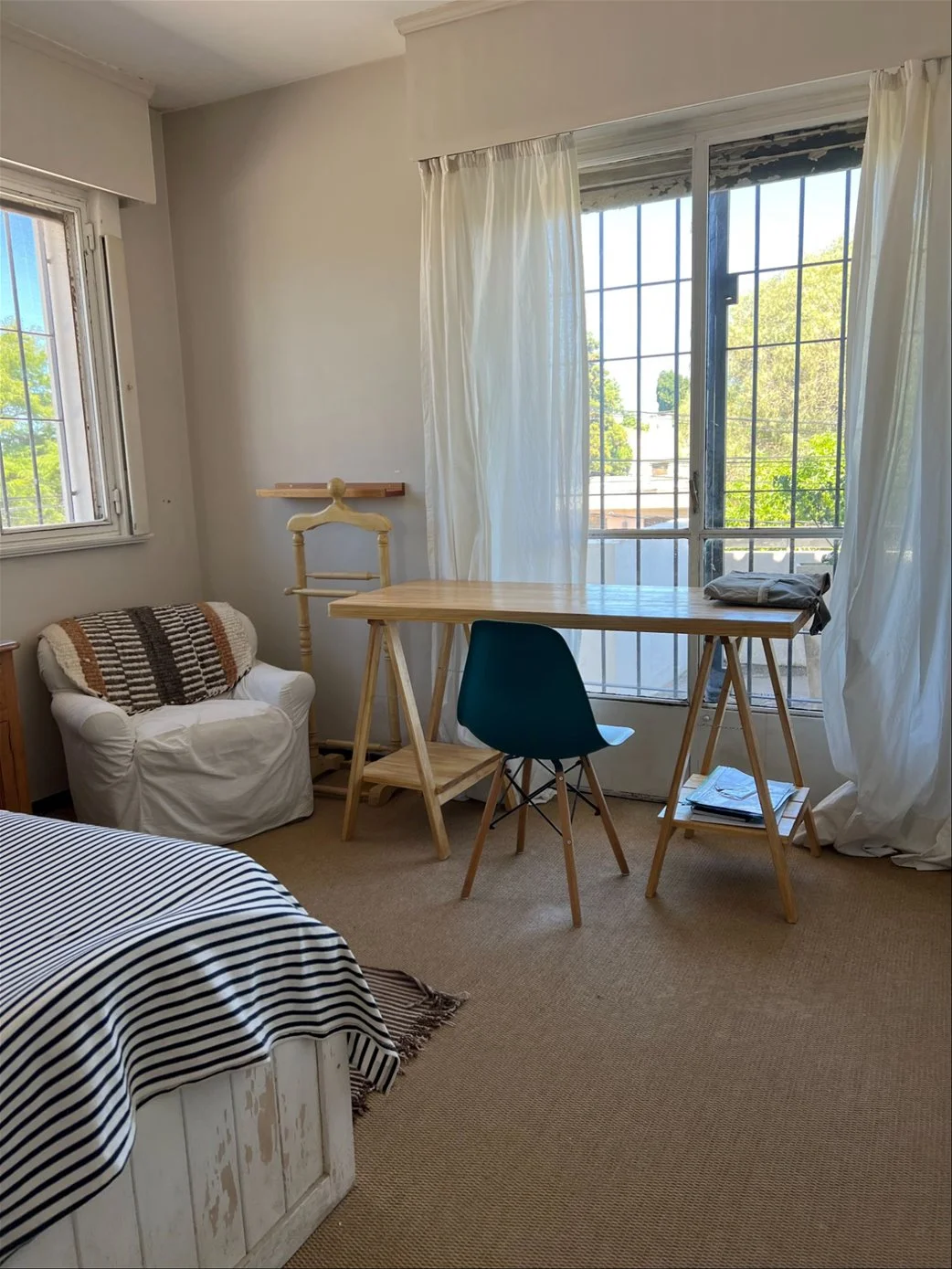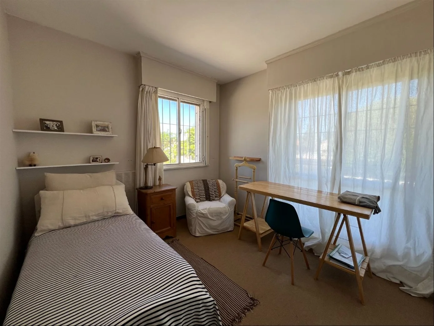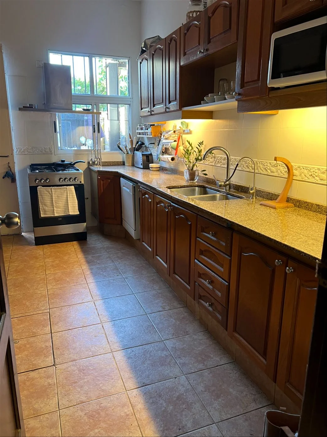 Desde la cocina se accede al cuarto y baño de servicio, con salida independiente hacia el fondo, donde se encuentra el sector de colgado de ropa.