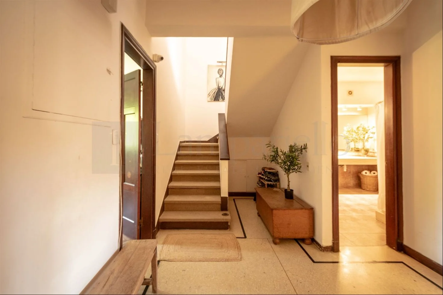 Desde el living se accede a un hall que conecta con el otro sector de la planta, donde se ubican un dormitorio, un estar, el baño social y la cocina definida con buena capacidad de almacenamiento.