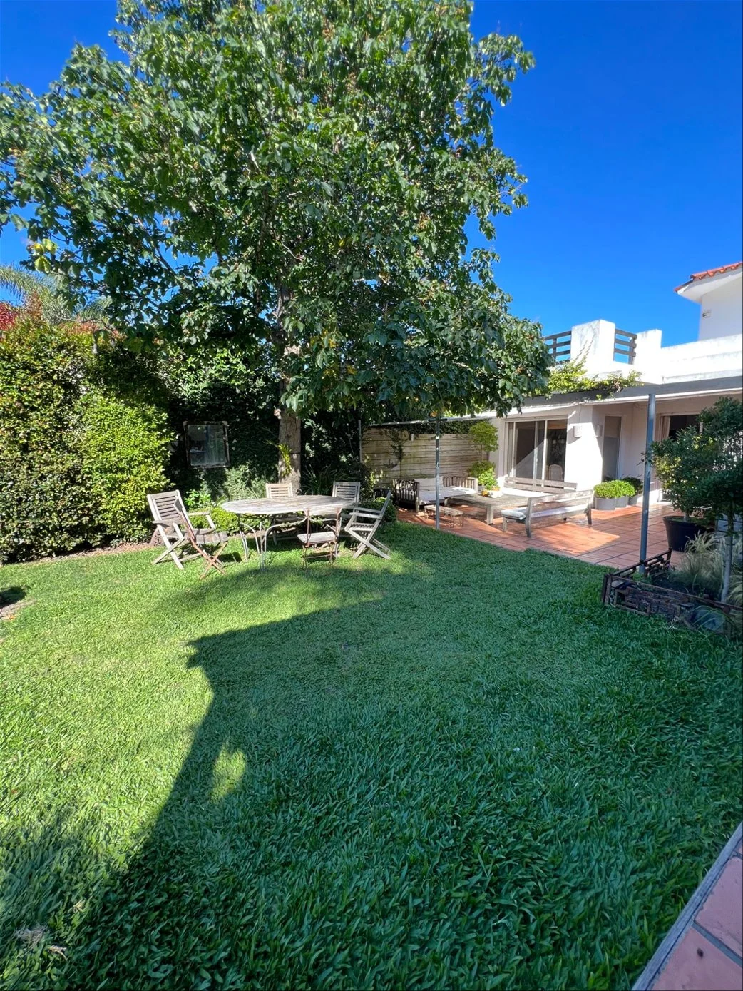 El fondo tiene orientación norte, con muy linda luz todo el día y un jardín divino con espacio para piscina y parrillero techado.