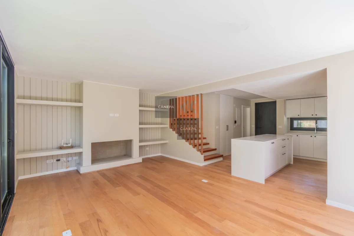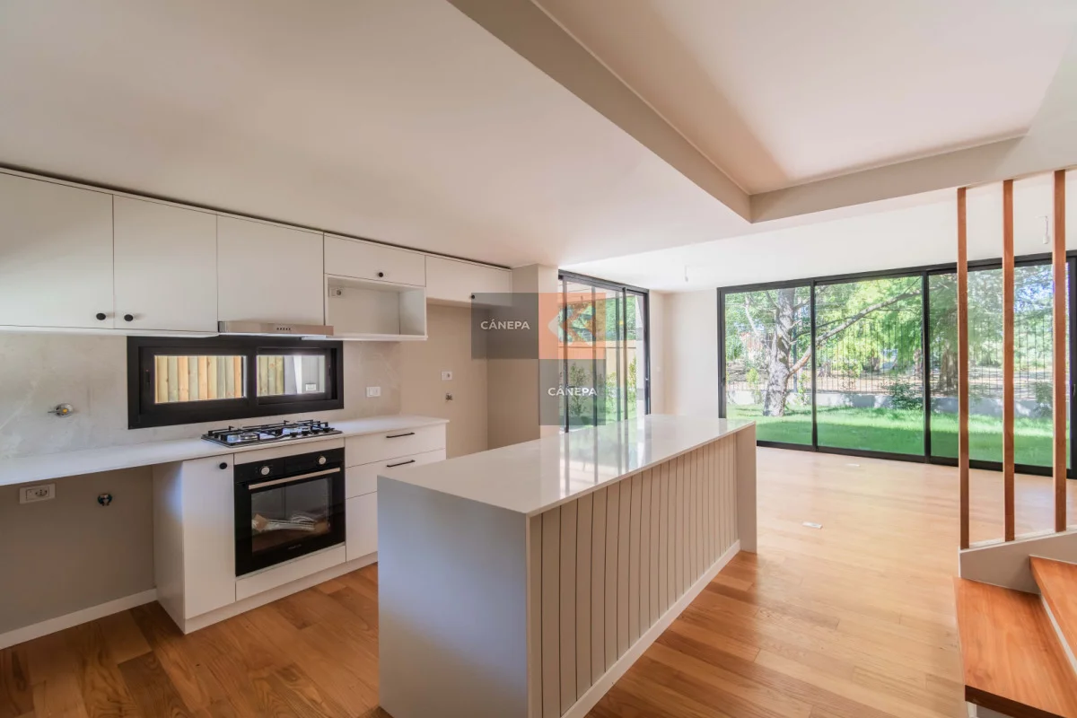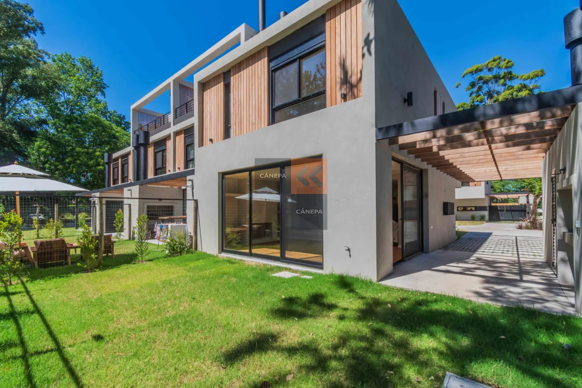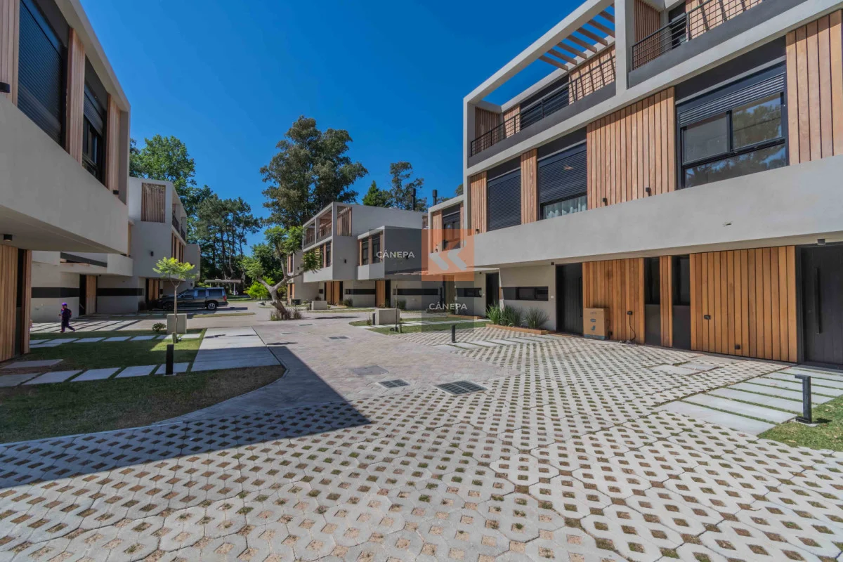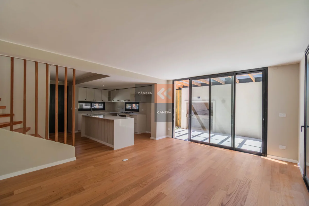 Planta baja: Living comedor amplio con estufa a leña y salida a jardín con parrillero Cocina integrada con isla Toilette Box de guardado Planta alta: 3 dormitorios 2 baños completos, principal en suite Cochera abierta Gastos comunes $11.000 Complejo con seguridad y piscina de uso común. Referencia Interna : Tera-17028