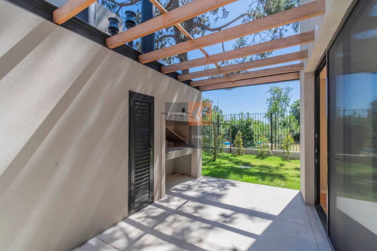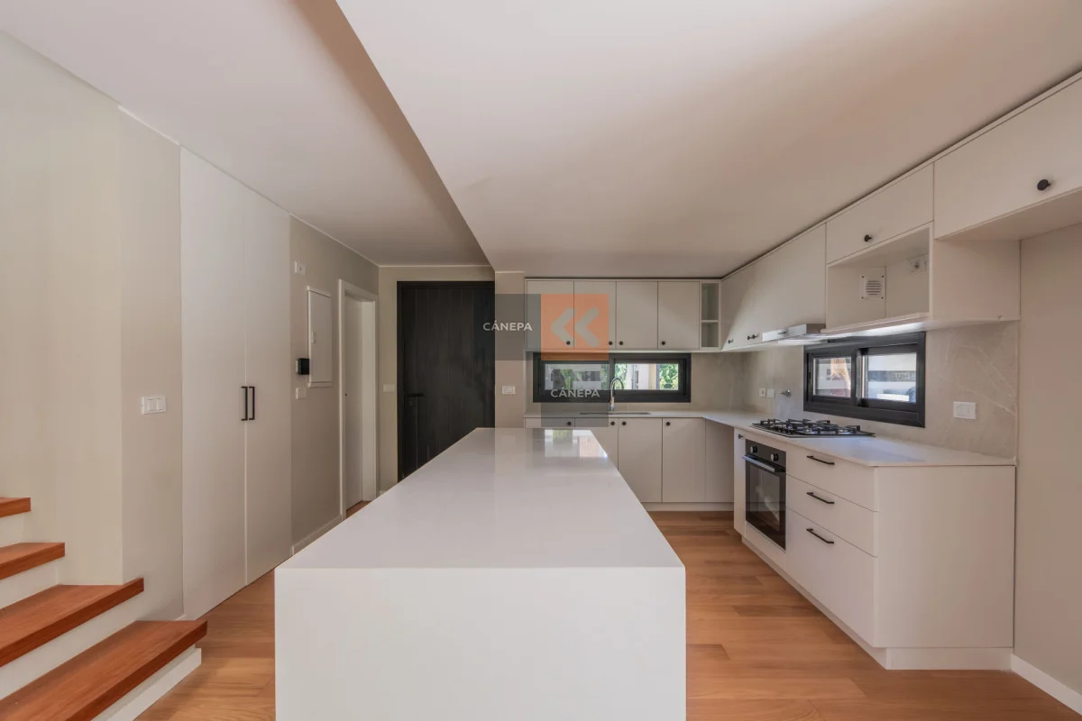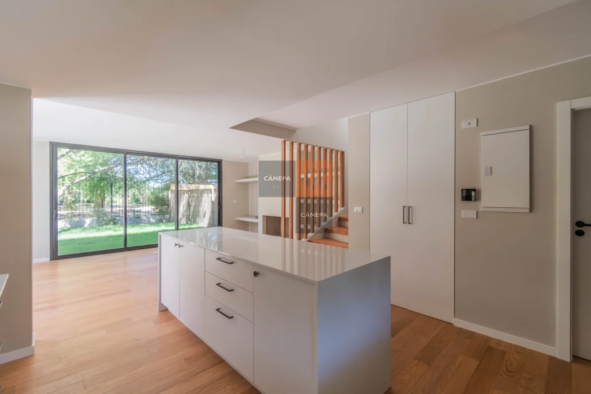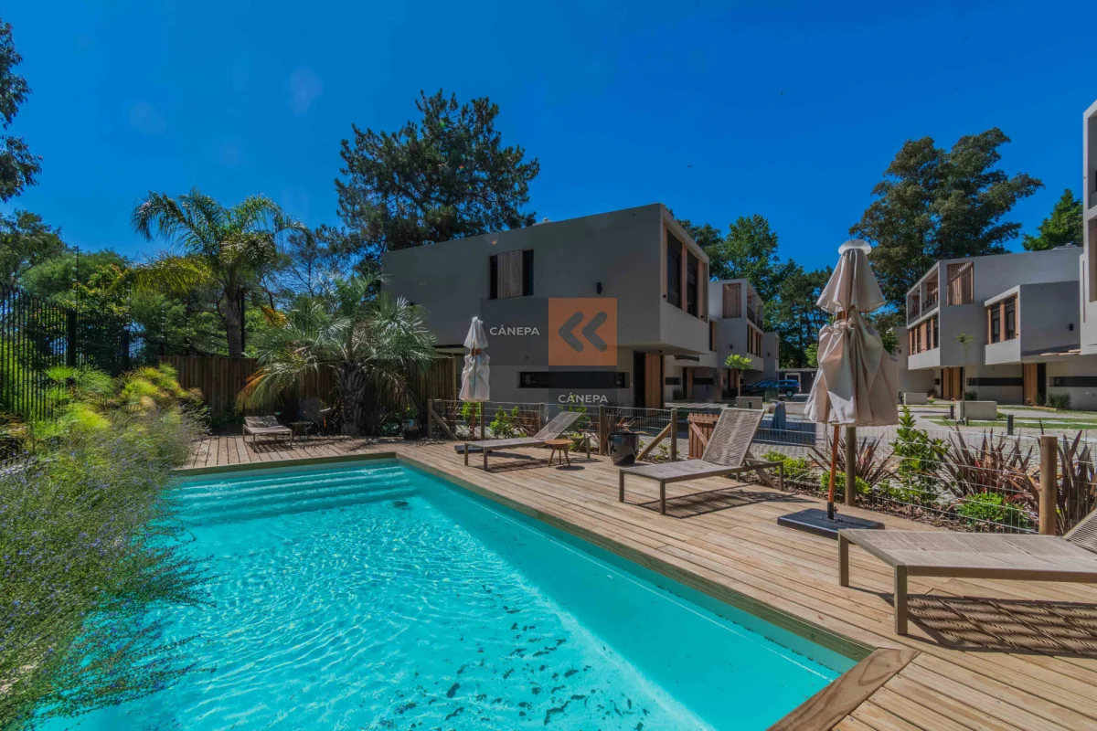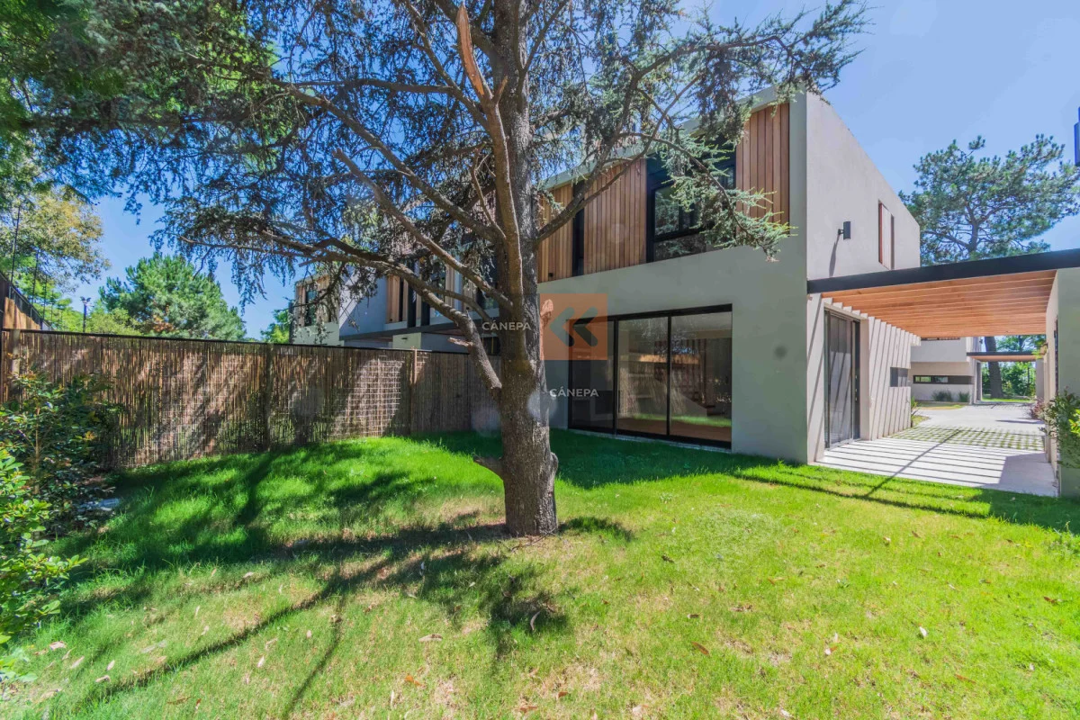 Planta baja: Living comedor amplio con estufa a leña y salida a jardín con parrillero Cocina integrada con isla Toilette Box de guardado Planta alta: 3 dormitorios 2 baños completos, principal en suite Cochera abierta Gastos comunes $11.000 Complejo con seguridad y piscina de uso común. Referencia Interna : Tera-17028
