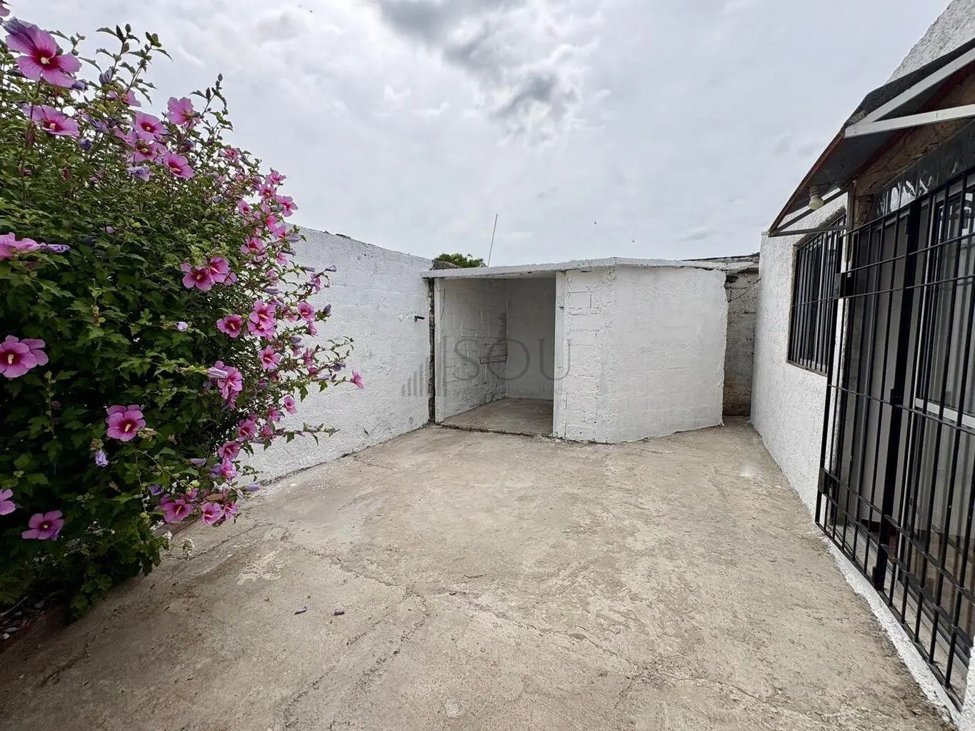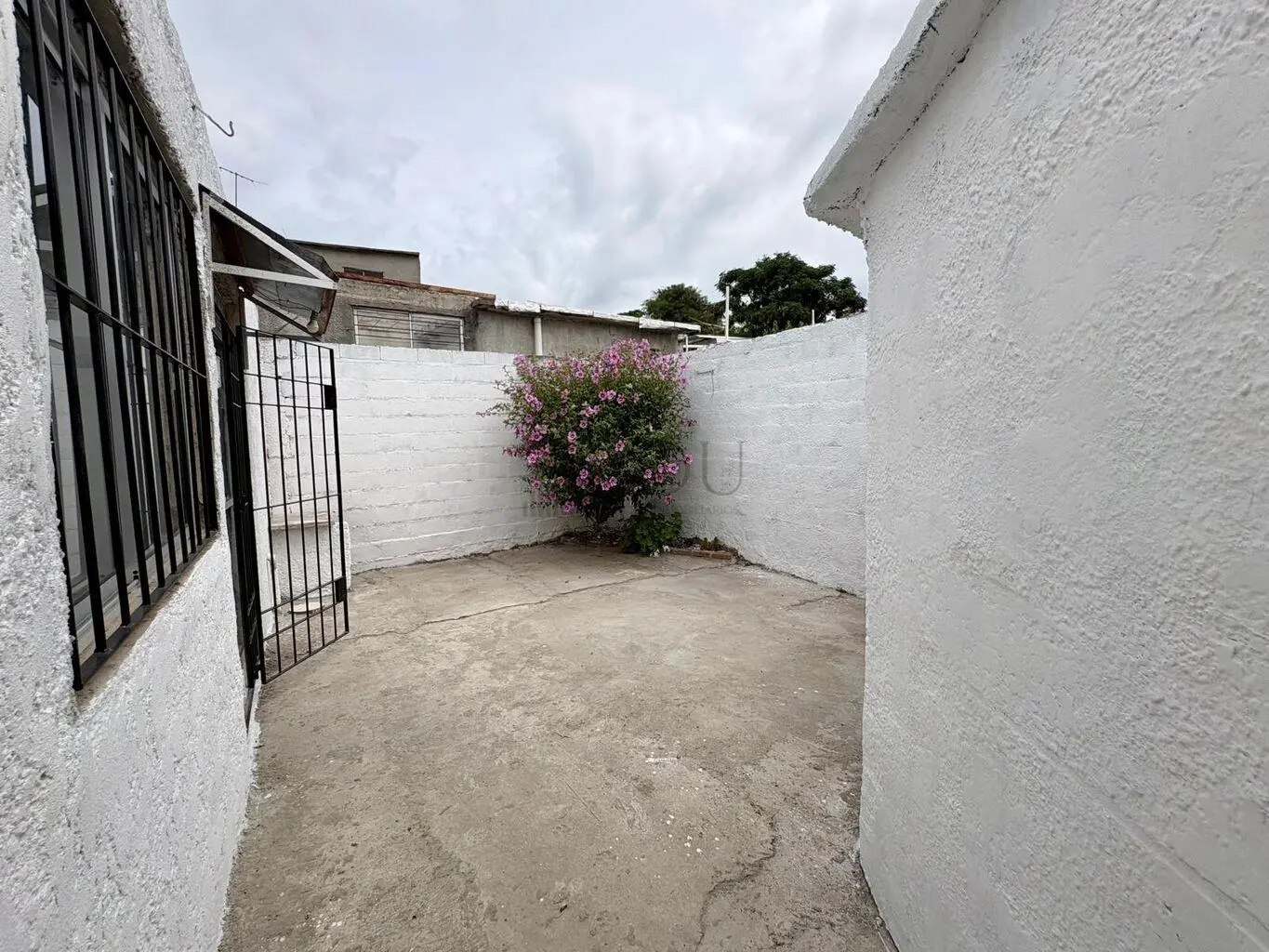 Patio con posible barbacoa y acceso lateral directo.