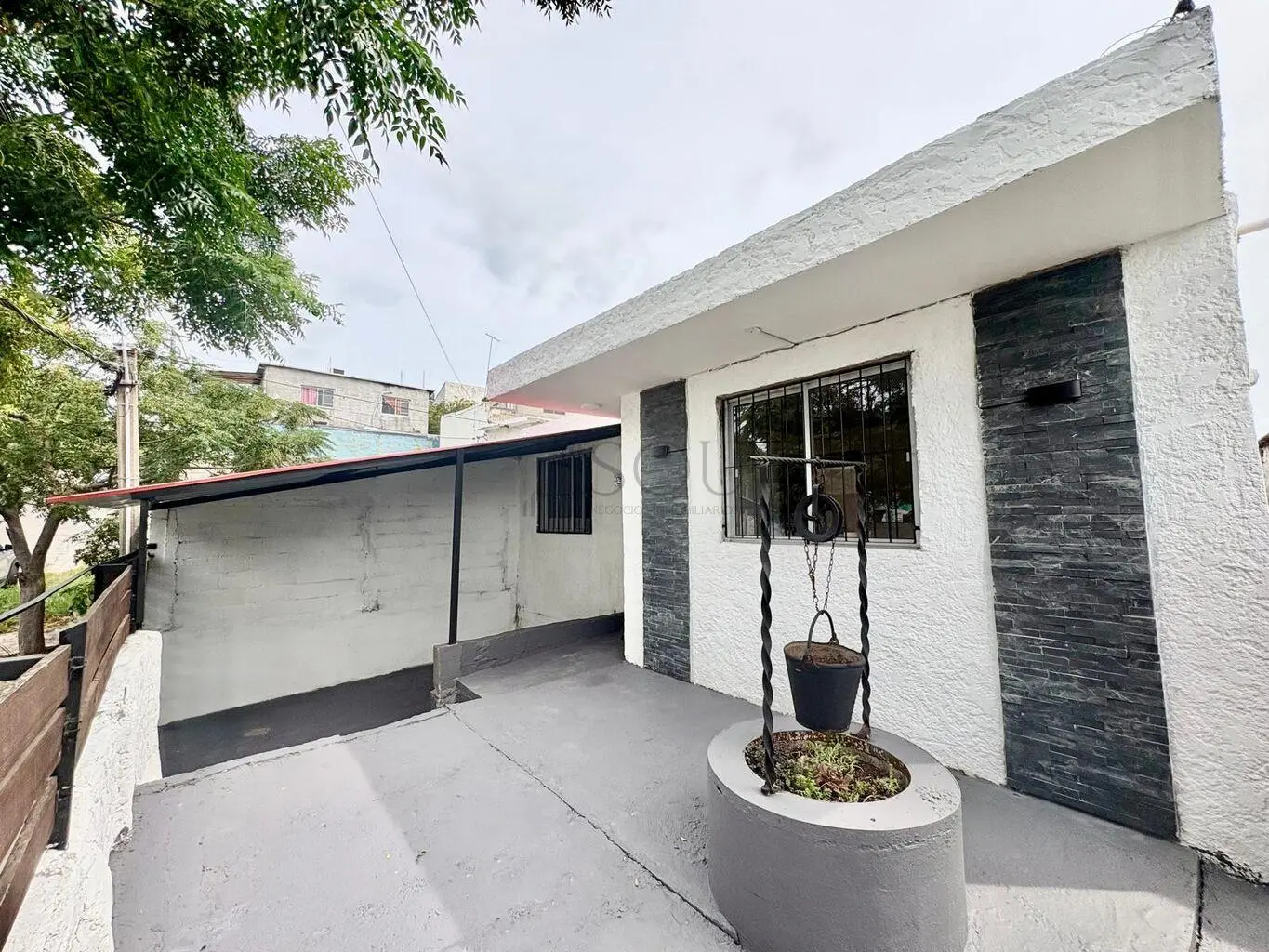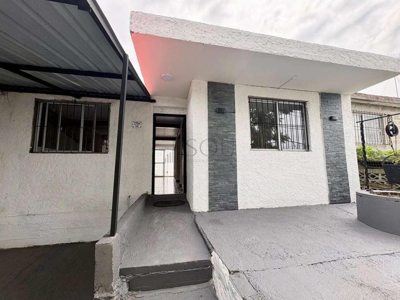 Cochera techada para un vehículo.