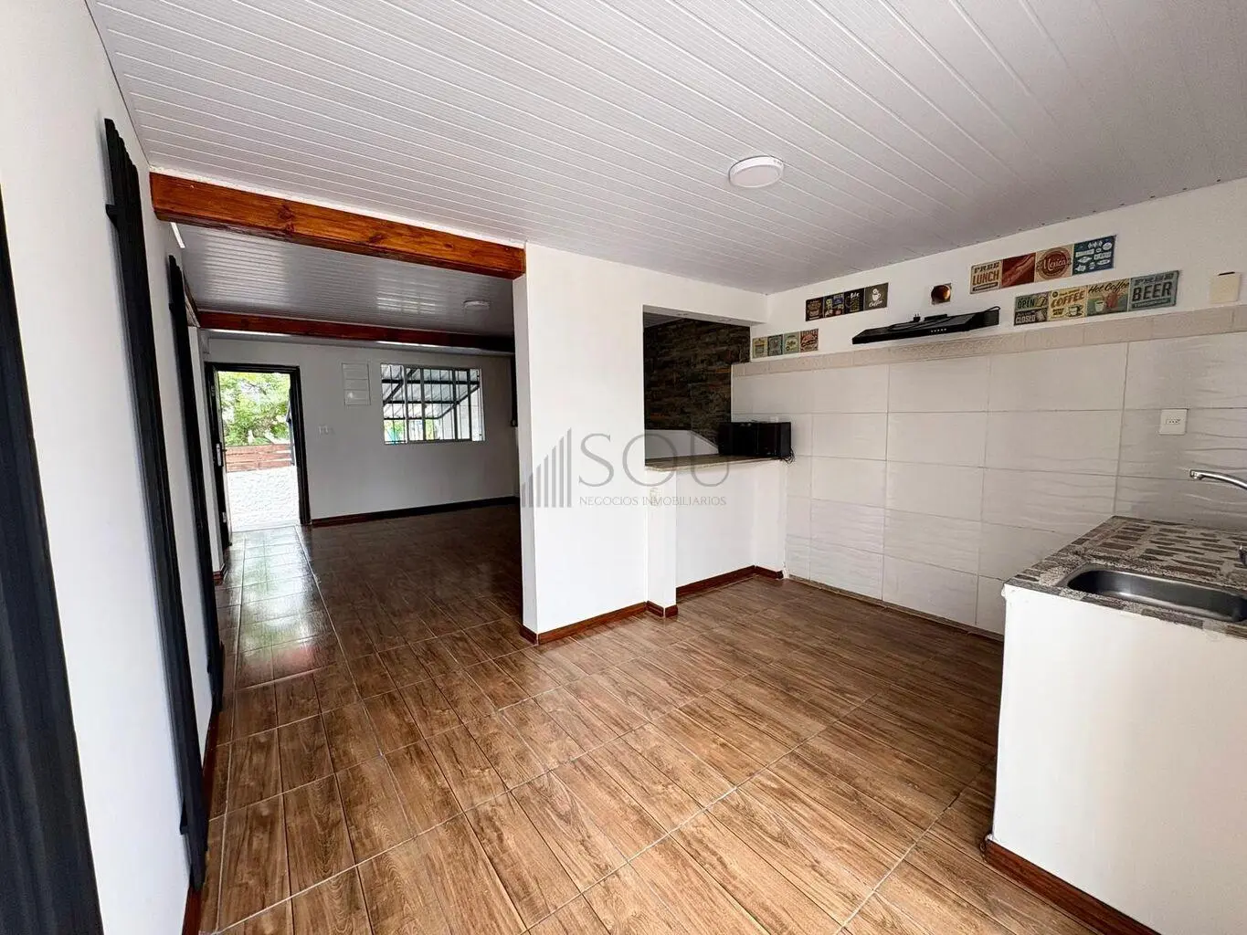 Cocina semi integrada con salida al patio.