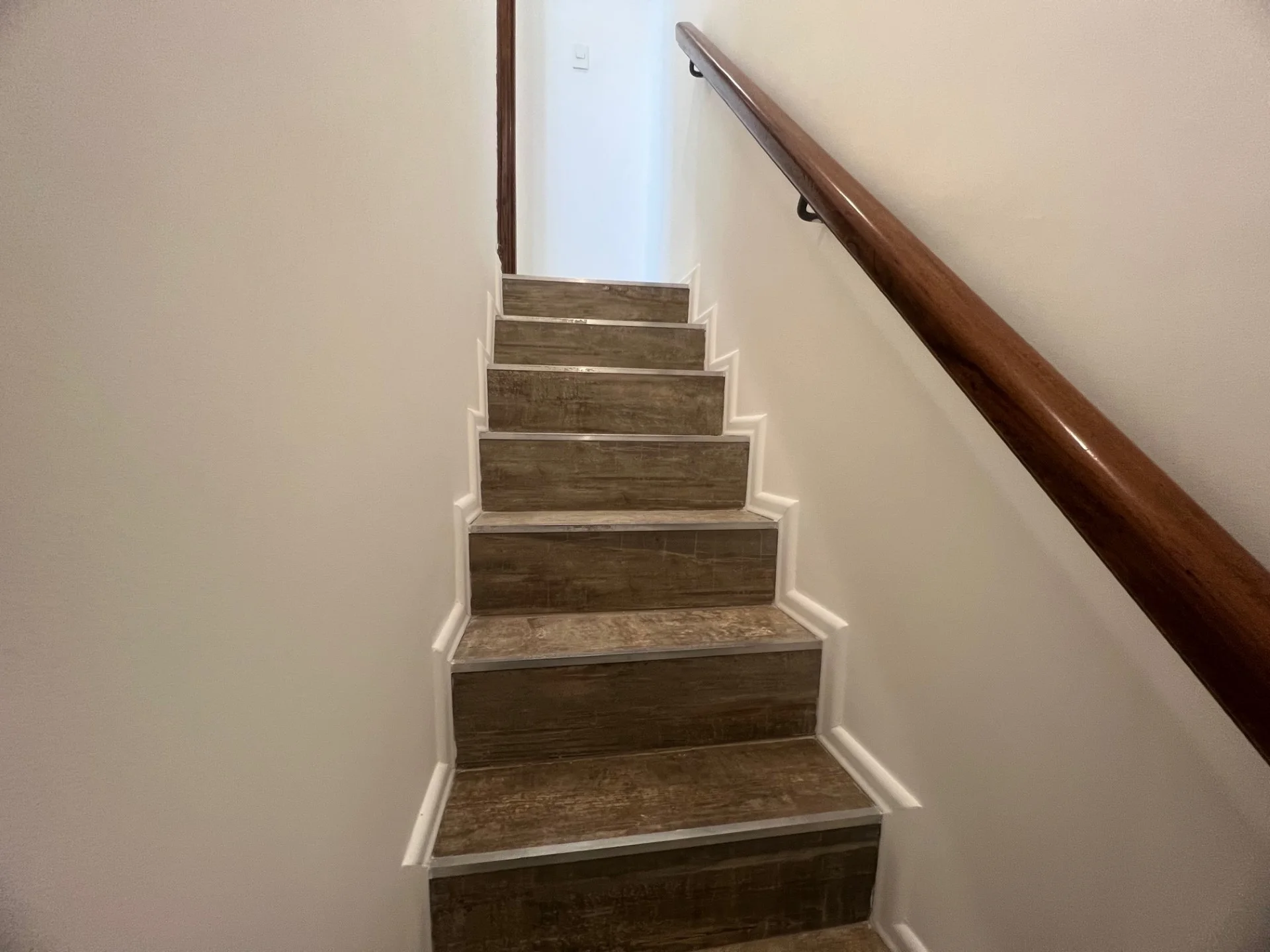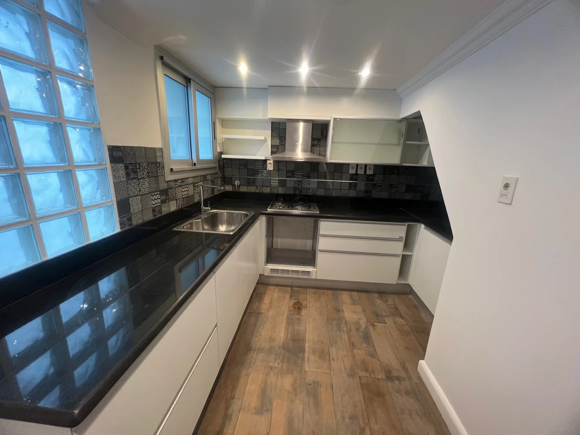 Casa de Altos. Escalera de mármol. Living Comedor al frente con piso de porcelanato. Salida a balcón. 2 dormitorios. Uno de ellos también con salida a balcón. Tanto el living como los dormitorios tienen persianas eléctricas. Cocina definida con placares bajo y sobre mesada. Anafe. Campana. Altillo con 1 dormitorio más. Baño completo.