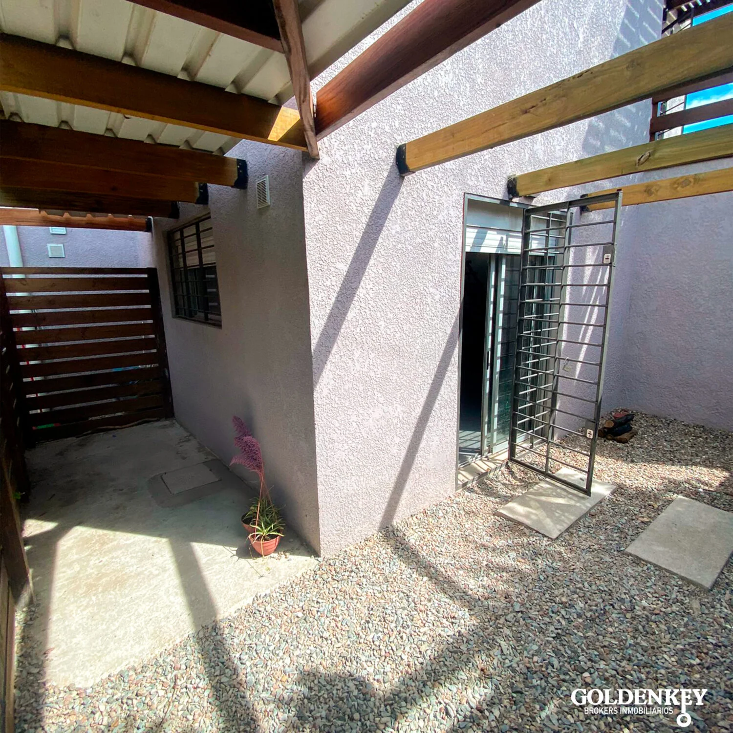 Ingreso por pasillo abierto. Acceso por portón con cerco de madera.
