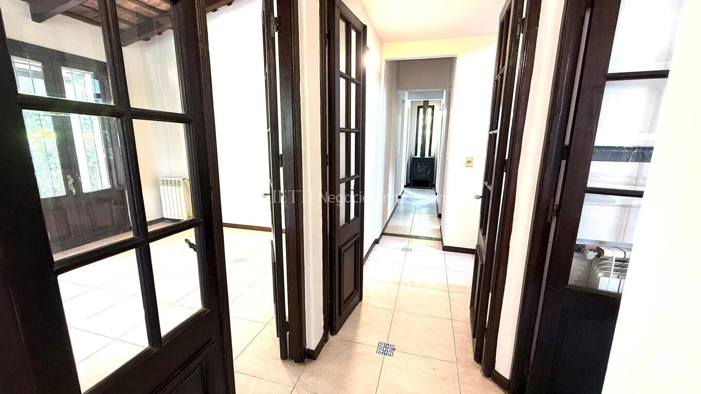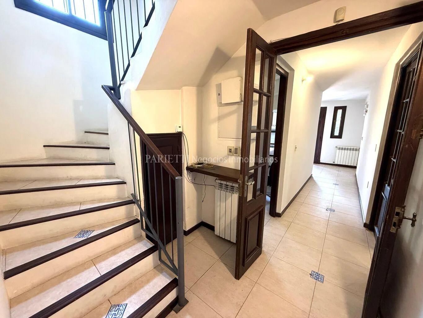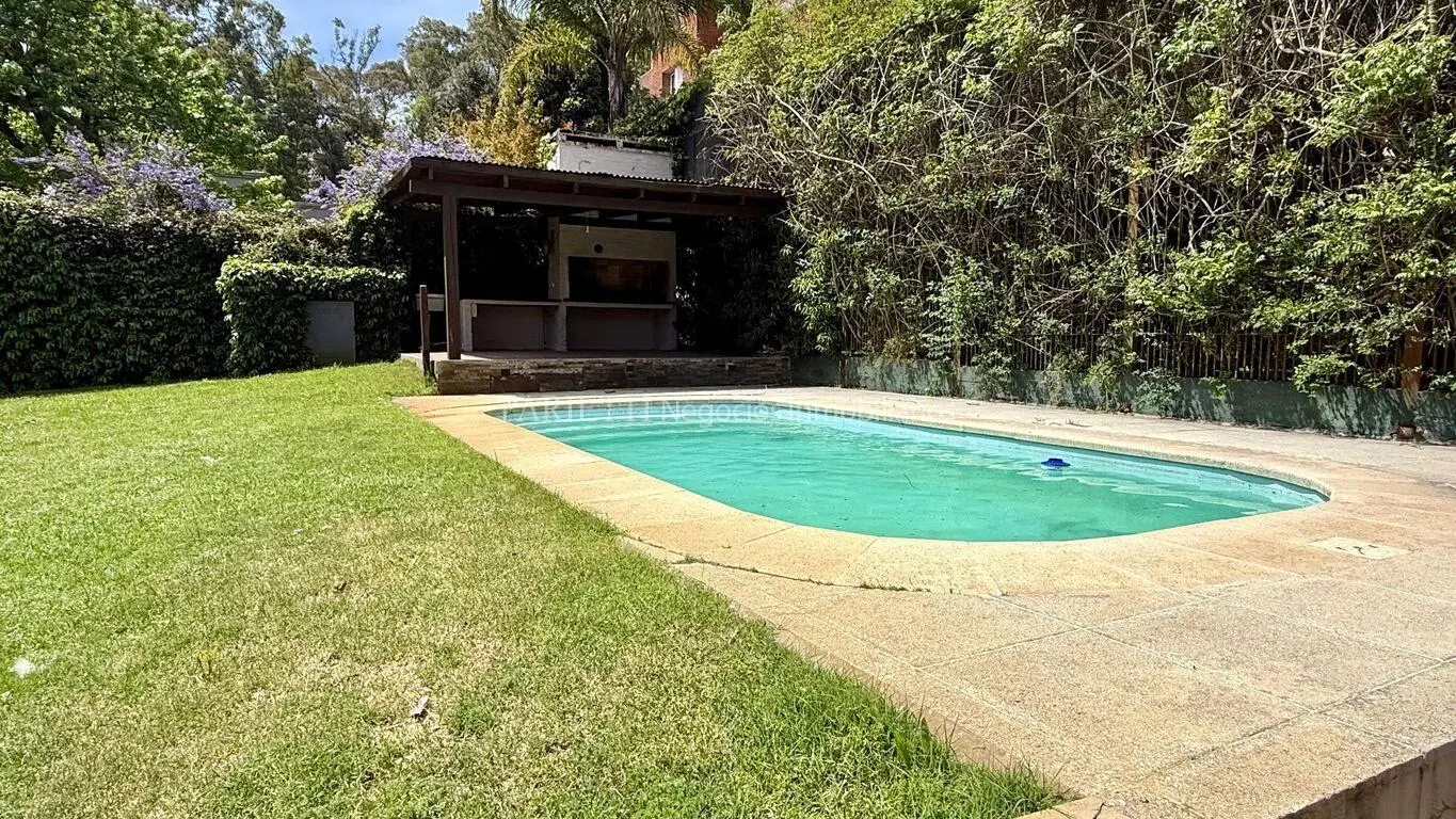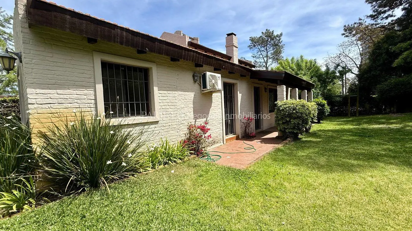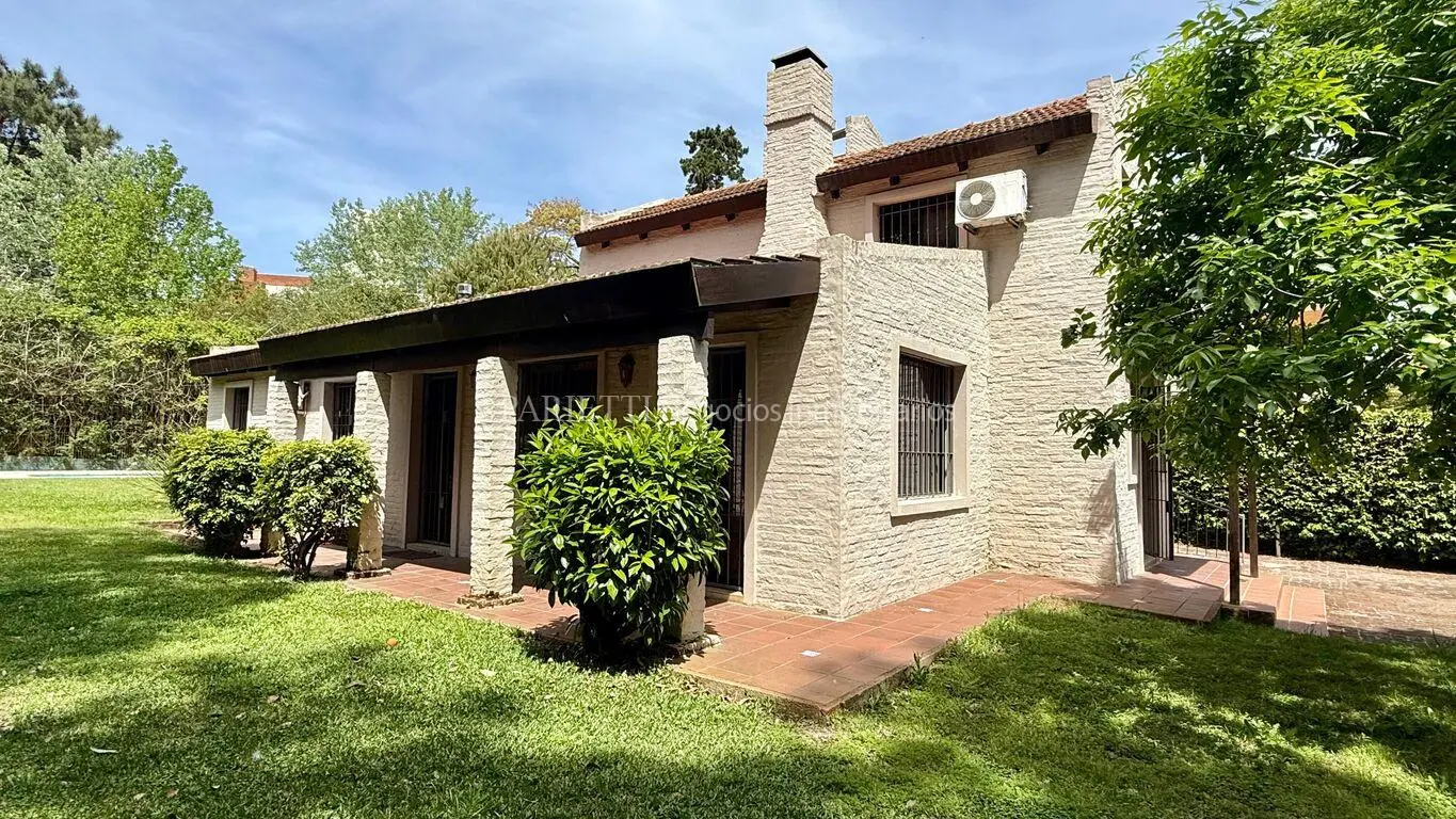 De muy buen gusto. Desarrollada en 2 plantas. Planta Baja: Pallier, living-comedor con estufa a leña, y salida a galería, 3 dormitorios, 1 baño completo,, cocina. Planta Alta: Muy linda suite. Lavadero. En el fondo del jardín , una edificación con estar con estufa a leña, baño completo y un cuarto chico, Piscina y Parrillero cubierto.