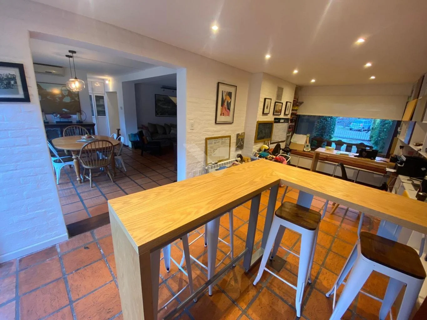 En planta baja, Living amplio al frente con grandes ventanales con comunicacion a la cocina. Estar comedor, semi integrado a barbacoa con parrillero. Gran cocina con terraza lavadero. Toilette