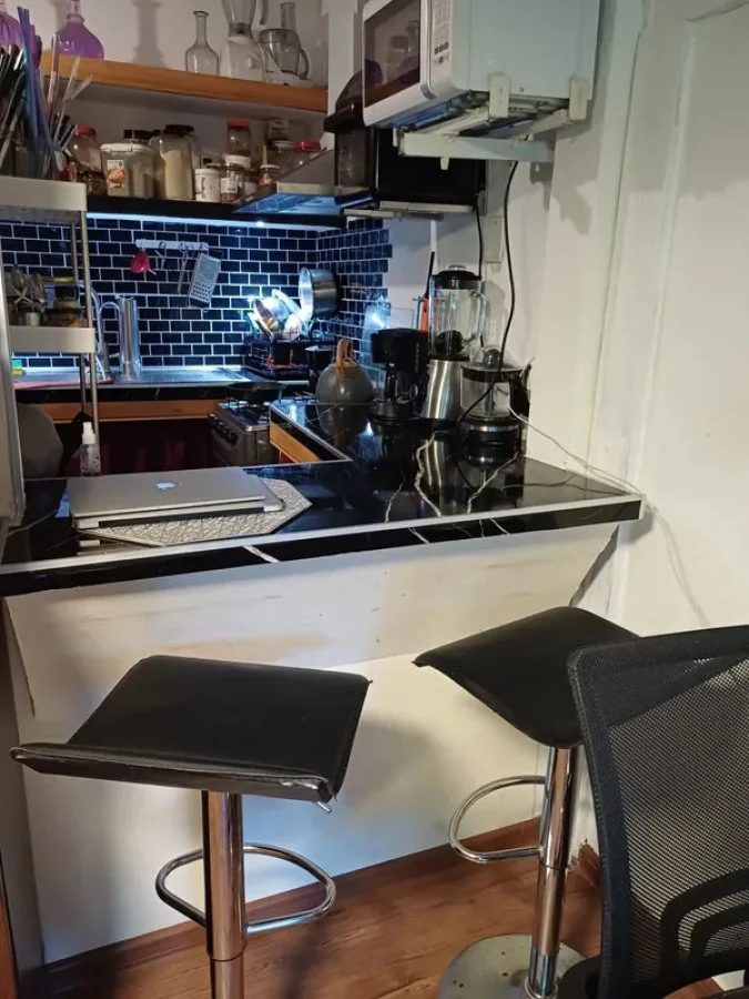 Equipamiento incluido: Sommier, placar, cama 1 plaza, heladera, microondas, cocina, lavarropas, 2 calefones y 2 ventiladores