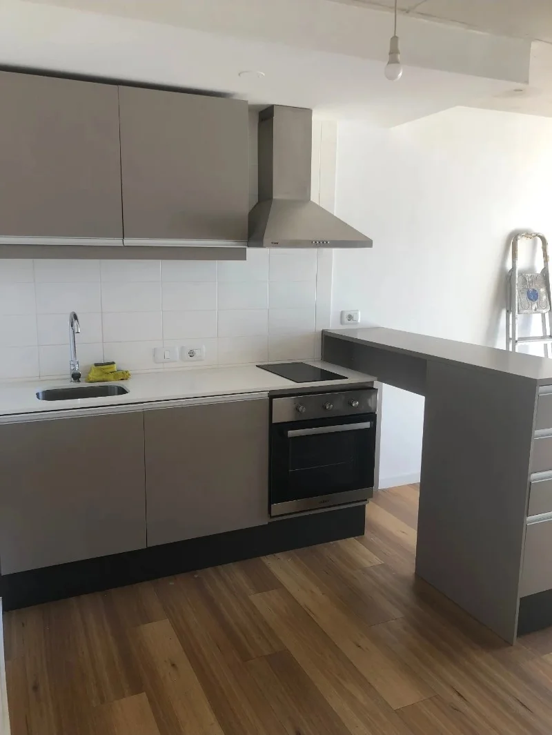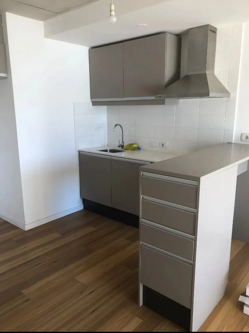 Cuenta con cocina integrada con barra, muebles bajo mesada, horno, anafe y campana.