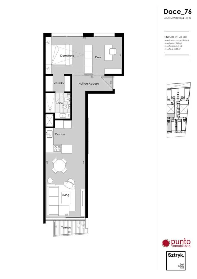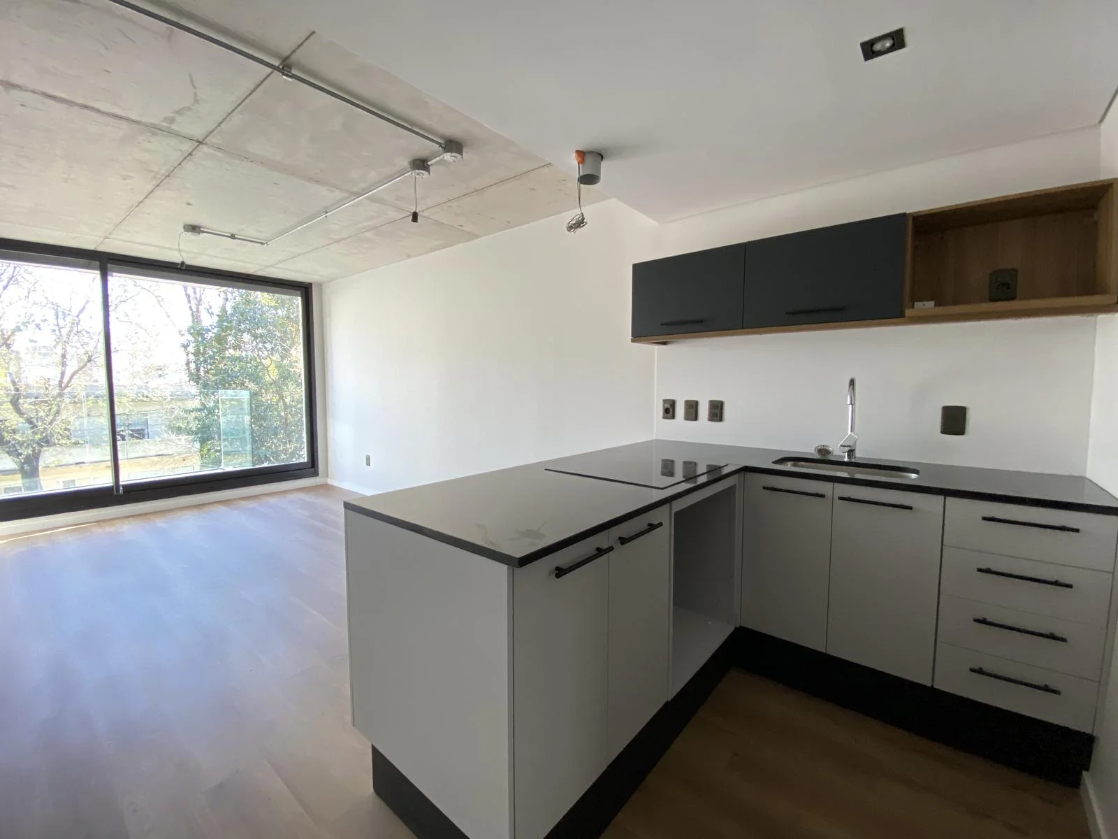 Living comedor con amplio ventanal y salida a terraza la cual abarca el ancho del living.