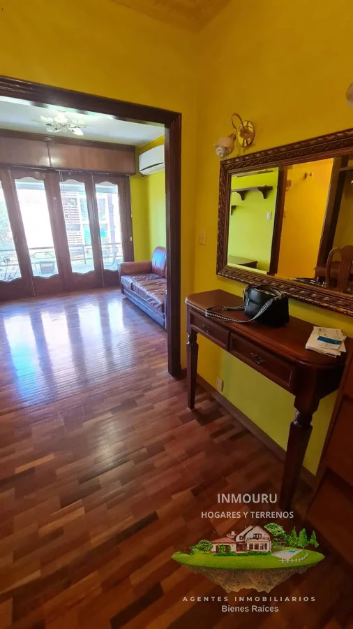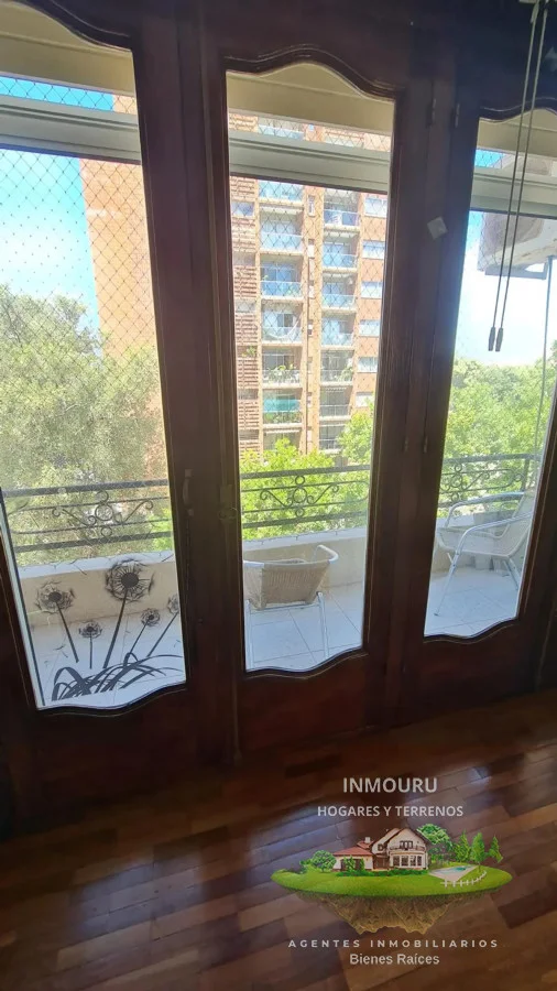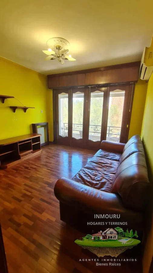 Sala de estar y recibidor están amueblados tiene aire acondicionado, dan al frente con un gran ventanal doble y salida al balcón.