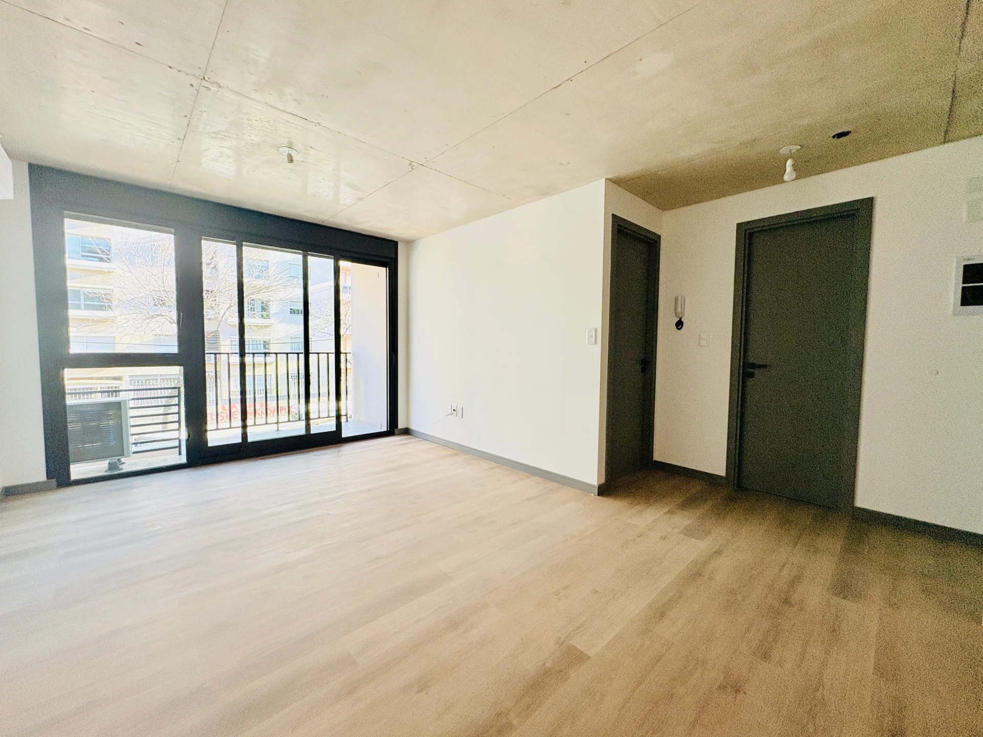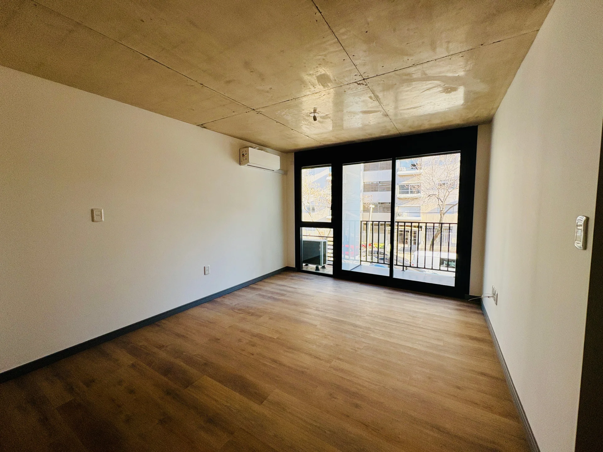 La unidad se encuentra en primer piso al frente con orientación oeste, y ofrece un living-comedor luminoso con aire acondicionado y salida a terraza, cocina semiintegrada con campana extractora, dormitorio cómodo con placard y baño completo. ¡A estrenar!